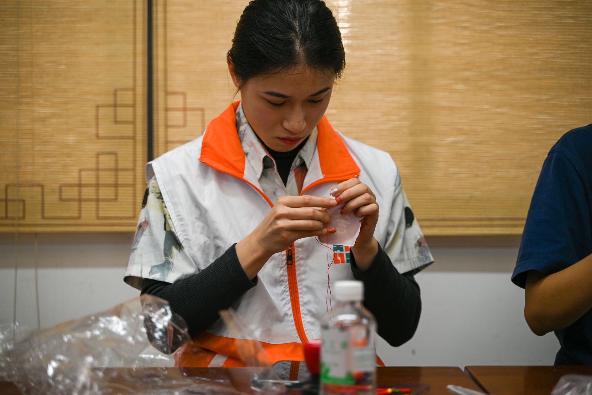 庄悦本身对香包制作技艺很感兴趣,所以在看到社区发布志愿者招募后,就毫不犹豫地报了名。在服务师生的同时,庄悦也感受到了师生们的用心。“香包制作难度比较大,大家虽然磕磕绊绊的,但最后都还是可以把香包缝制好,我觉得大家都很厉害。”