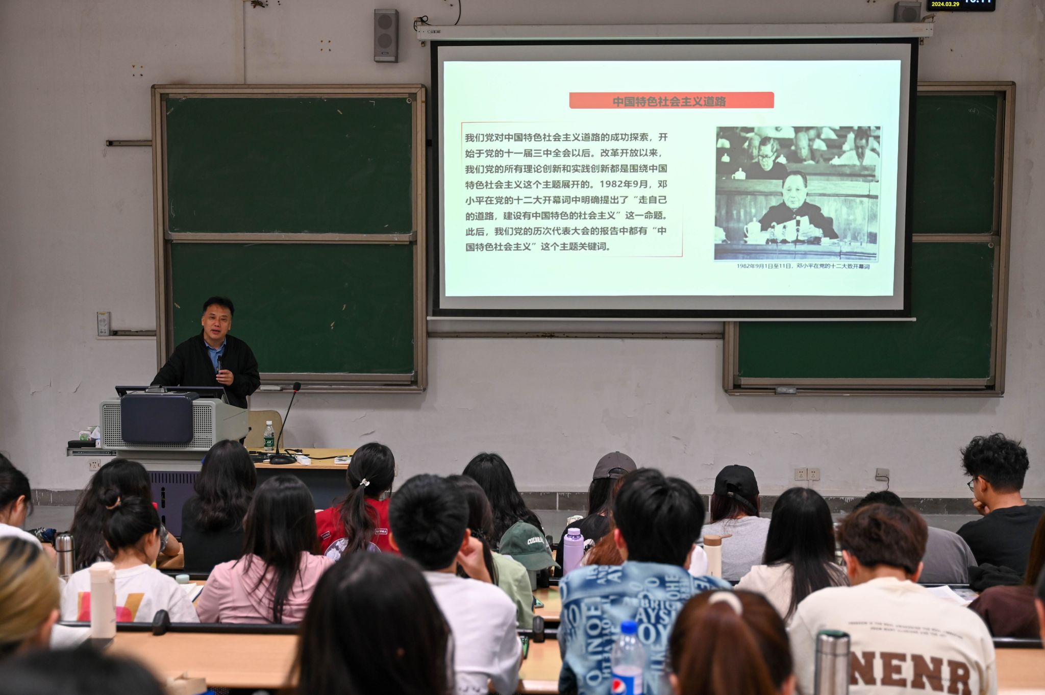 3月29日下午,校党委副书记、校长马宏伟为文学与传媒学院2023级汉语言文学专业人文科学实验班、广播电视学专业卓越新闻班、商务英语实验班学生上“思政第一课”,讲述中国特色社会主义如何一路走来。