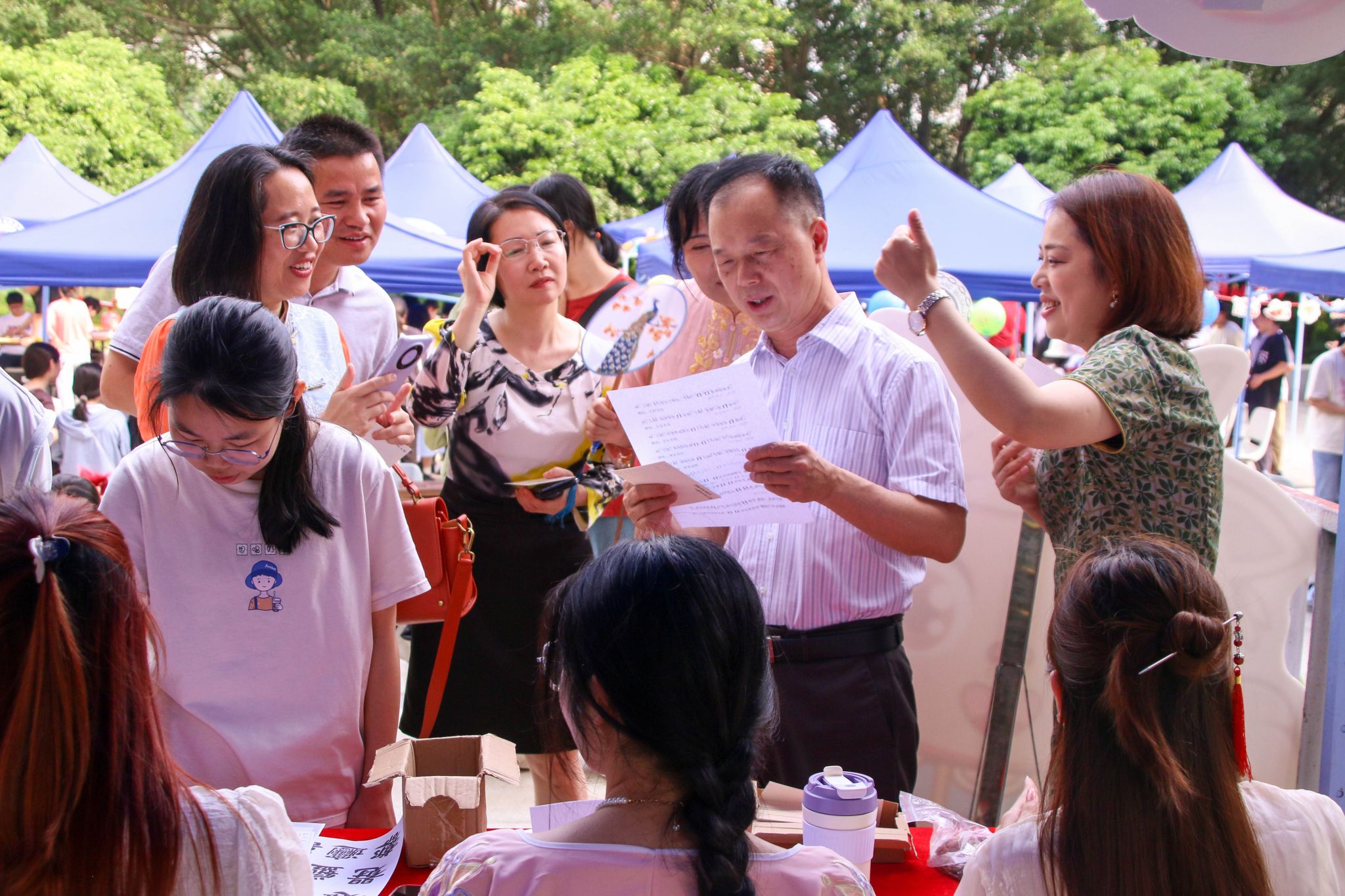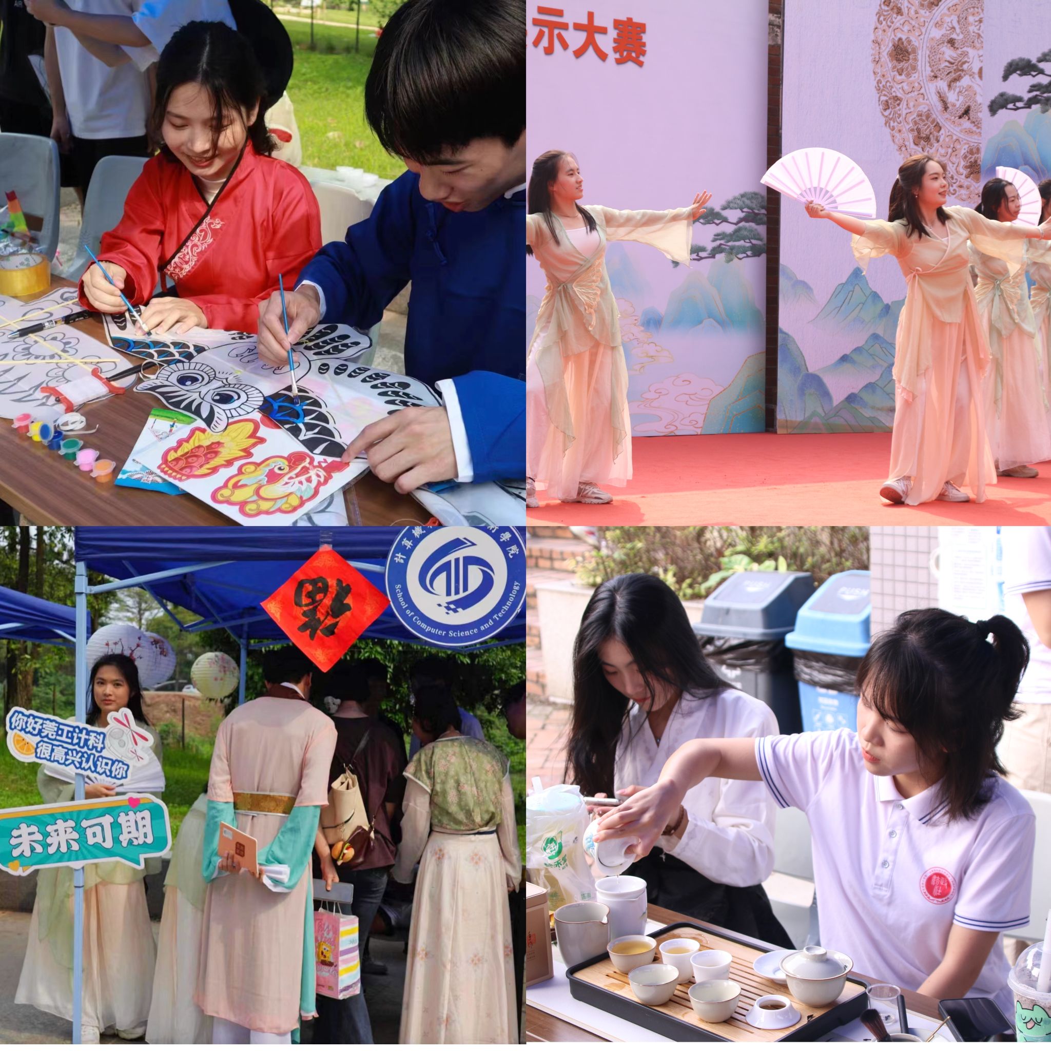 学校“尔雅汉韵”“莞香文化”“茶艺协会”等学生社团通过声乐、舞蹈、戏曲、武术等多种艺术形式,生动展现了中华传统文化的独特魅力和深厚底蕴。来自环建学院的刘同学表示:“现场有很多体现浓浓‘中国风’的传统文化活动,例如亲手制作剪纸从手工的角度让我们体会到了中华文化的独特美,展现出了中华民间艺术的魅力;在茶艺展示中,我们也能感受到中国茶文化的深厚底蕴和优雅礼仪。传承和弘扬中华优秀传统文化是我们每个人的责任,这次活动让我们能够更深入地了解和感受中华文化的丰富性。”