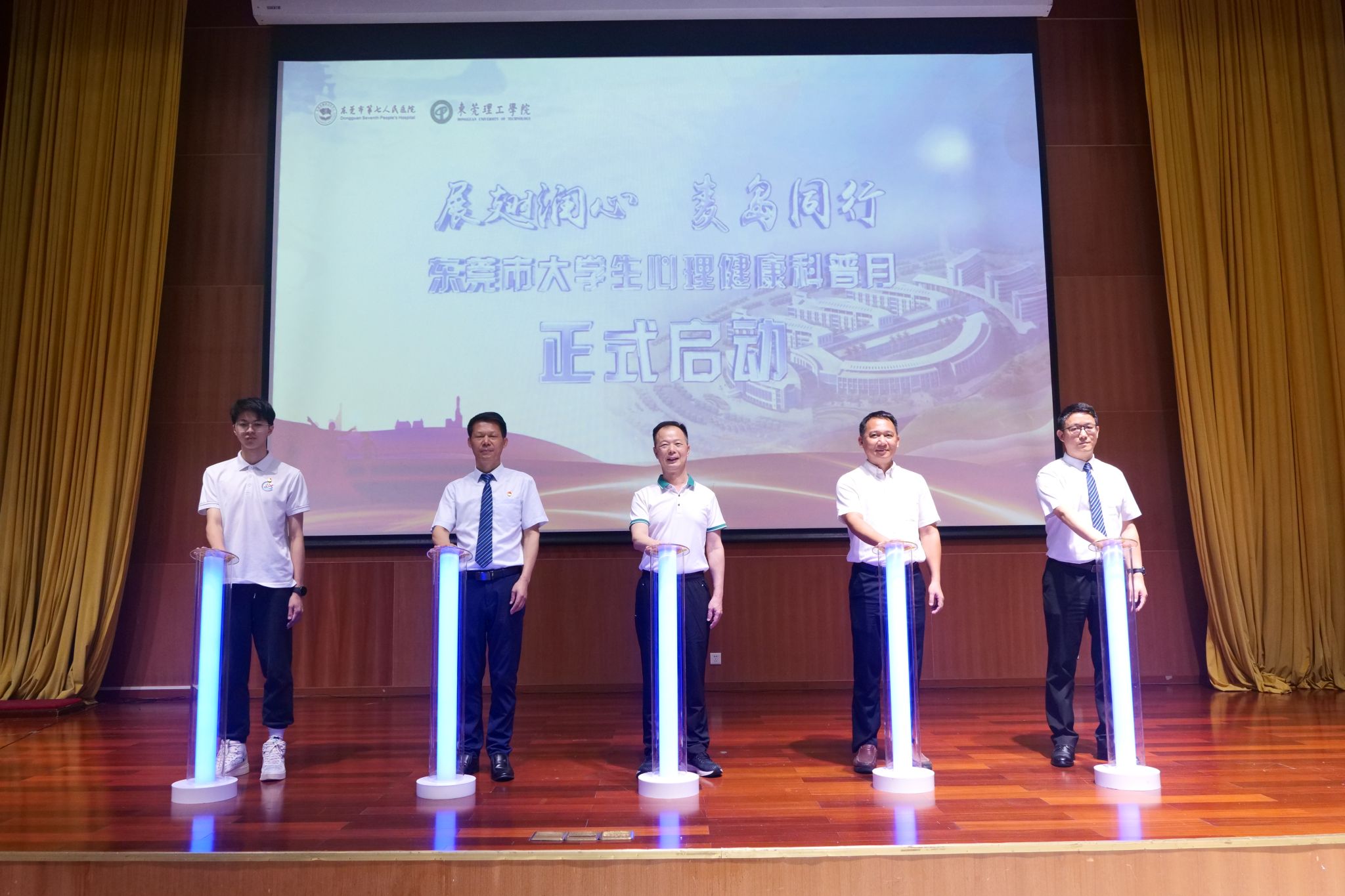 5月16日,2024年东莞市大学生心理健康科普月启动仪式在开云举行,校党委副书记李忠红、东莞市卫健局三级调研员陈少基、第七人民医院党委书记潘海恩及院长钟文彬出席仪式。