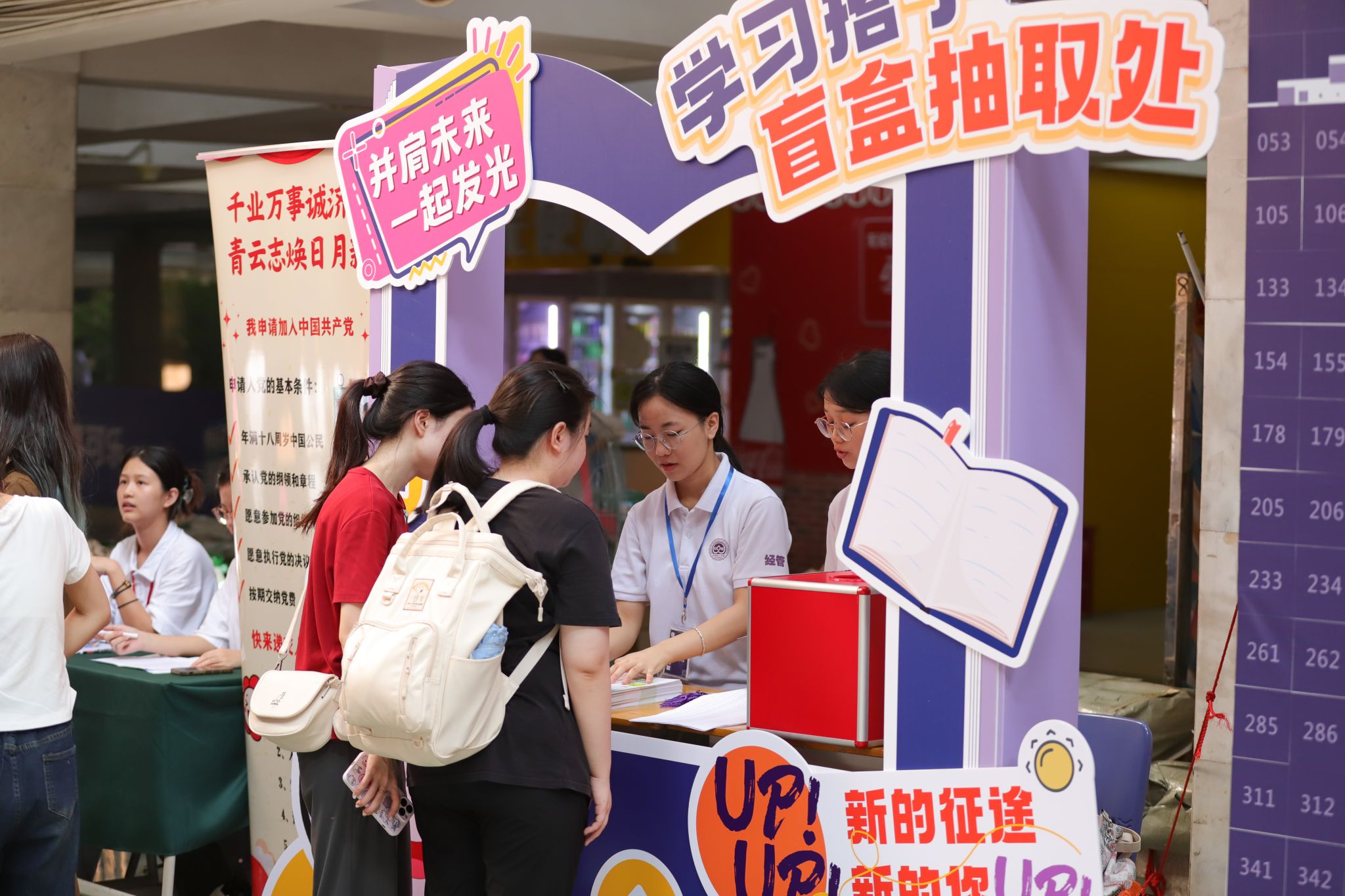 经济与管理学院人力资源管理专业本科新生叶子涵在报到时领取到了一份来自师兄师姐的心意。今年,经济与管理学院在迎新点设置了“学习搭子盲盒抽取”摊位,新生可以通过抽签换领一本《跨越年级的对话》和一张寄语书签。其中,《跨越年级的对话》是经管学院2024届优秀毕业生写给2024级新生的一封信;书签上的寄语,则由师兄师姐送出。这份迎新“礼物”让叶子涵感到格外惊喜和温暖。她说:“能够近距离感受优秀师兄师姐的风采,收获他们的经验分享,这对我来说不仅是宝贵的学习资源,更是一种鼓舞和激励!”