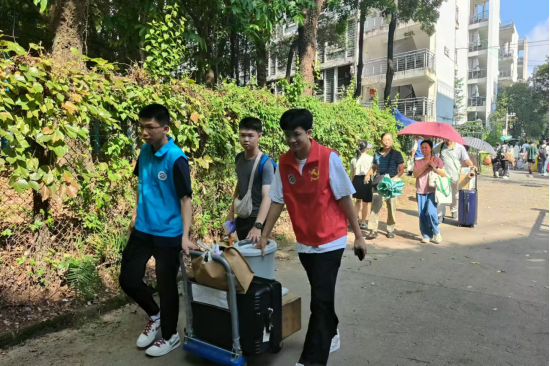 为了解决“大件行李怎么搬”的问题,给新生和家长提供更加便捷的服务,总务后勤党委组织党员同志及一线员工,披上黄马甲,开上三轮车,为初入校园的同学提供“后勤滴滴”行李搬运服务,打通新生从校门到宿舍的“最后500米”,收获了新生和家长的一致好评。