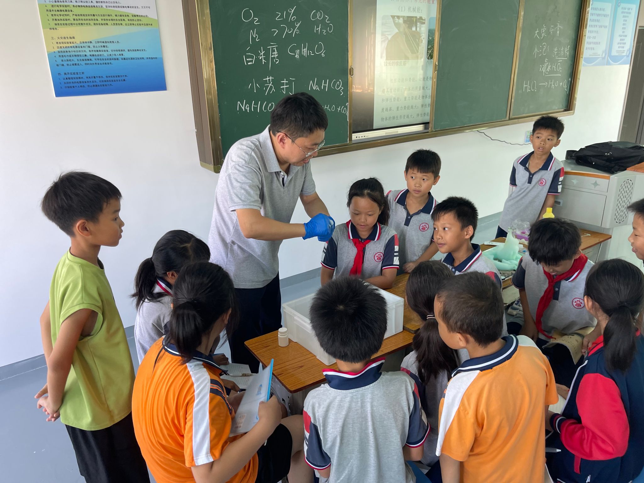 二是设立“博士来了”项目。“这个飞行器怎么操作的,好厉害!”今年5月9日,在马头镇中心小学的一场“博士来了”活动上,开云kaiyun官方网站的宋加雷博士以《动物飞行和飞行器仿生设计》为题,从飞行动物、飞行知识和仿生飞行器三个方面,生动形象地为学生进行启蒙指导,并演示了两款仿生飞行器,吸引了众多学生围观、提问。汪文龙博士把化学小实验带进科普课堂,向孩子们演示科学的神奇。为帮扶支持马头镇中心小学的科创教育,东莞理工教育集团设立“博士来了”项目,统筹优质社会资源,组织选派校内外的博士、专家、名师等,到马小以课堂教学、讲座、演示等方式开展科普教育。今年以来,已先后选派3人到马小,开展科普启蒙教育,拓宽孩子们的视野。