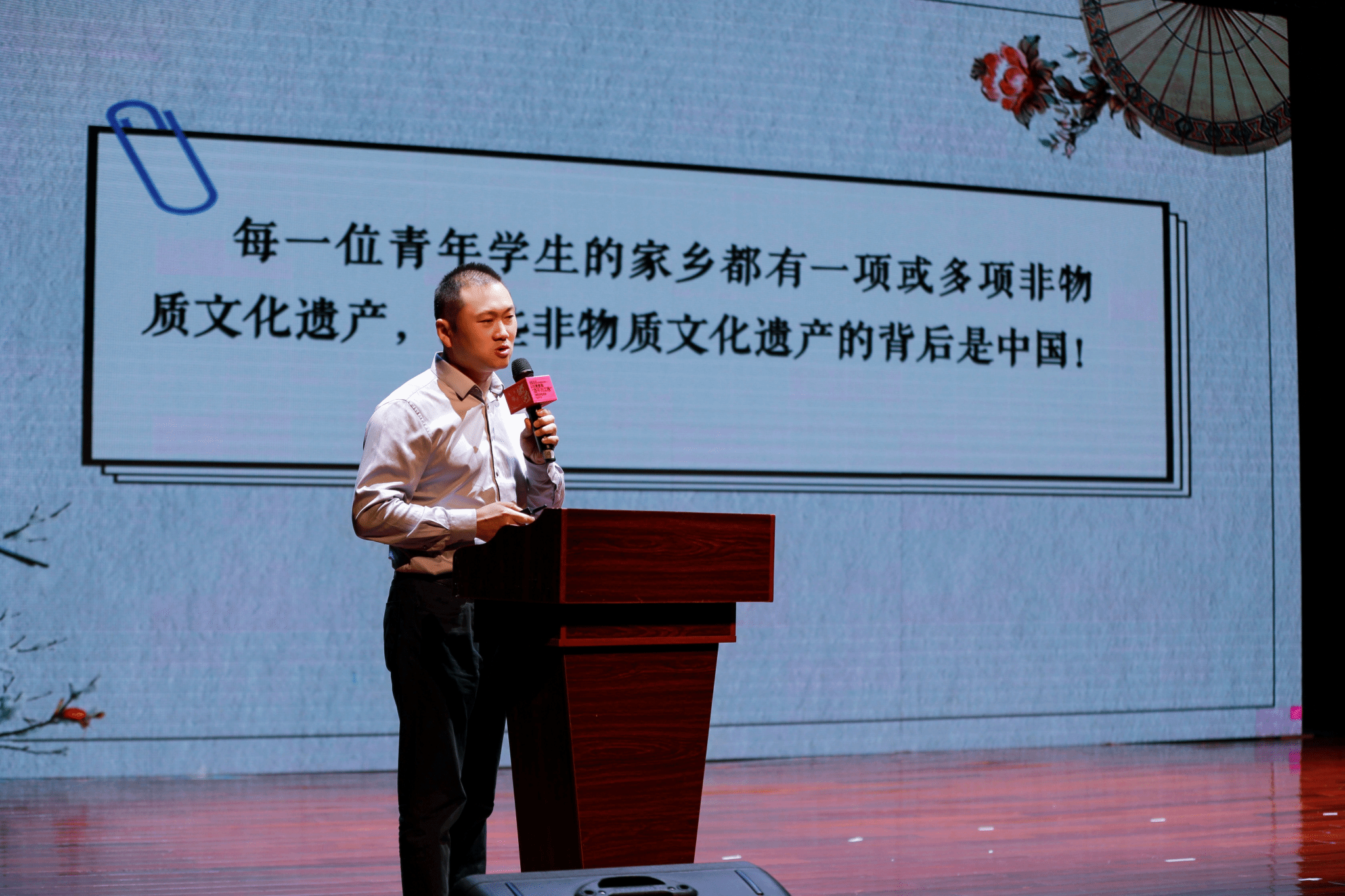郑永森教授展示了深圳职业技术大学传承非遗的实践成果,深圳职业技术大学教授学生国家级非遗如鱼灯舞、咏春拳等,并开展社会实践,在2019年评为省级传统文化传承基地。学校还与企业合作,建立非遗文创中心和实验室,设立公益基金和奖学金。深圳职业技术大学的目标是让非遗文化活跃、火热、红火,激发学生的文化使命感和创新能力,培养学生的家国情怀。