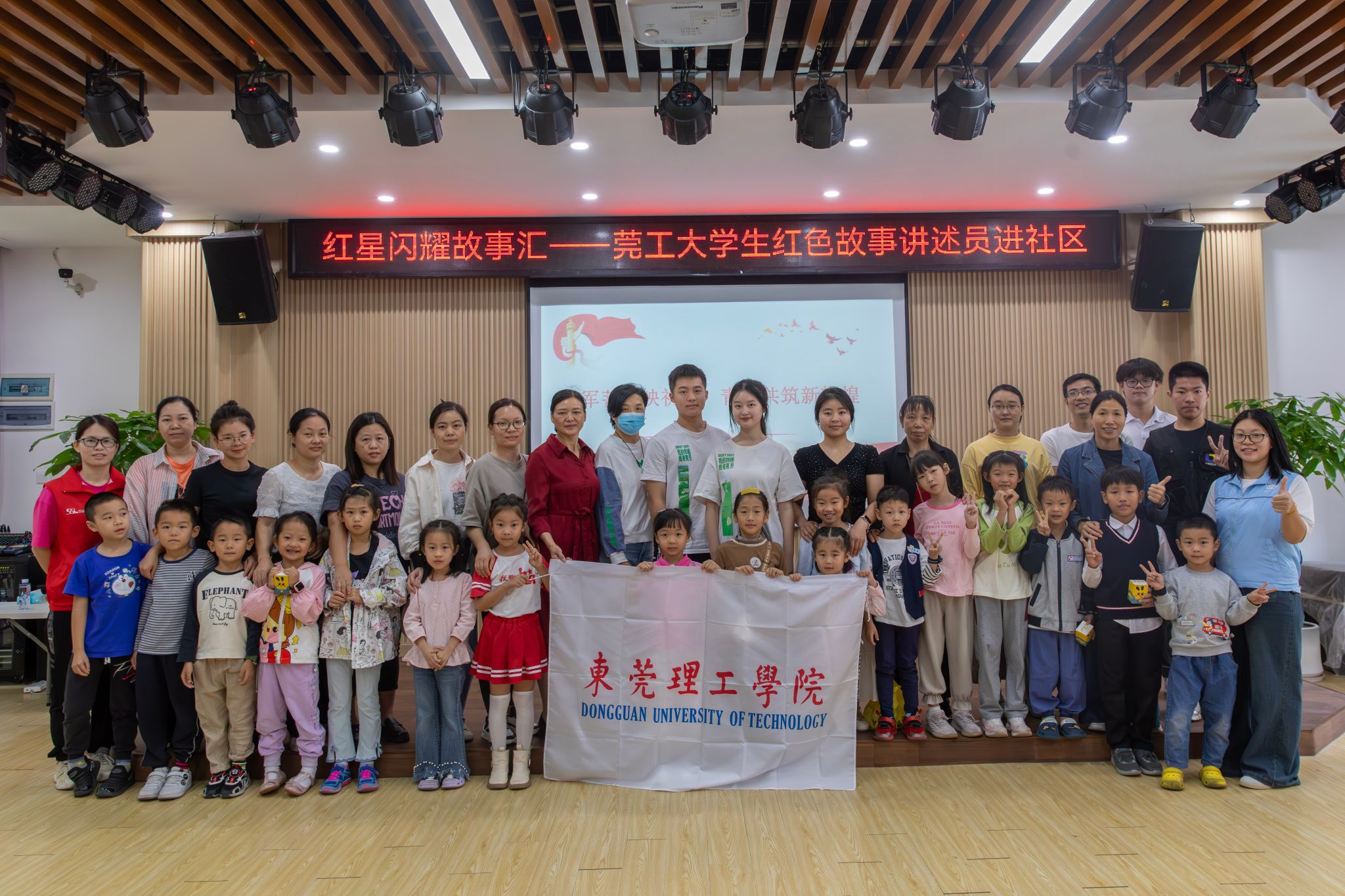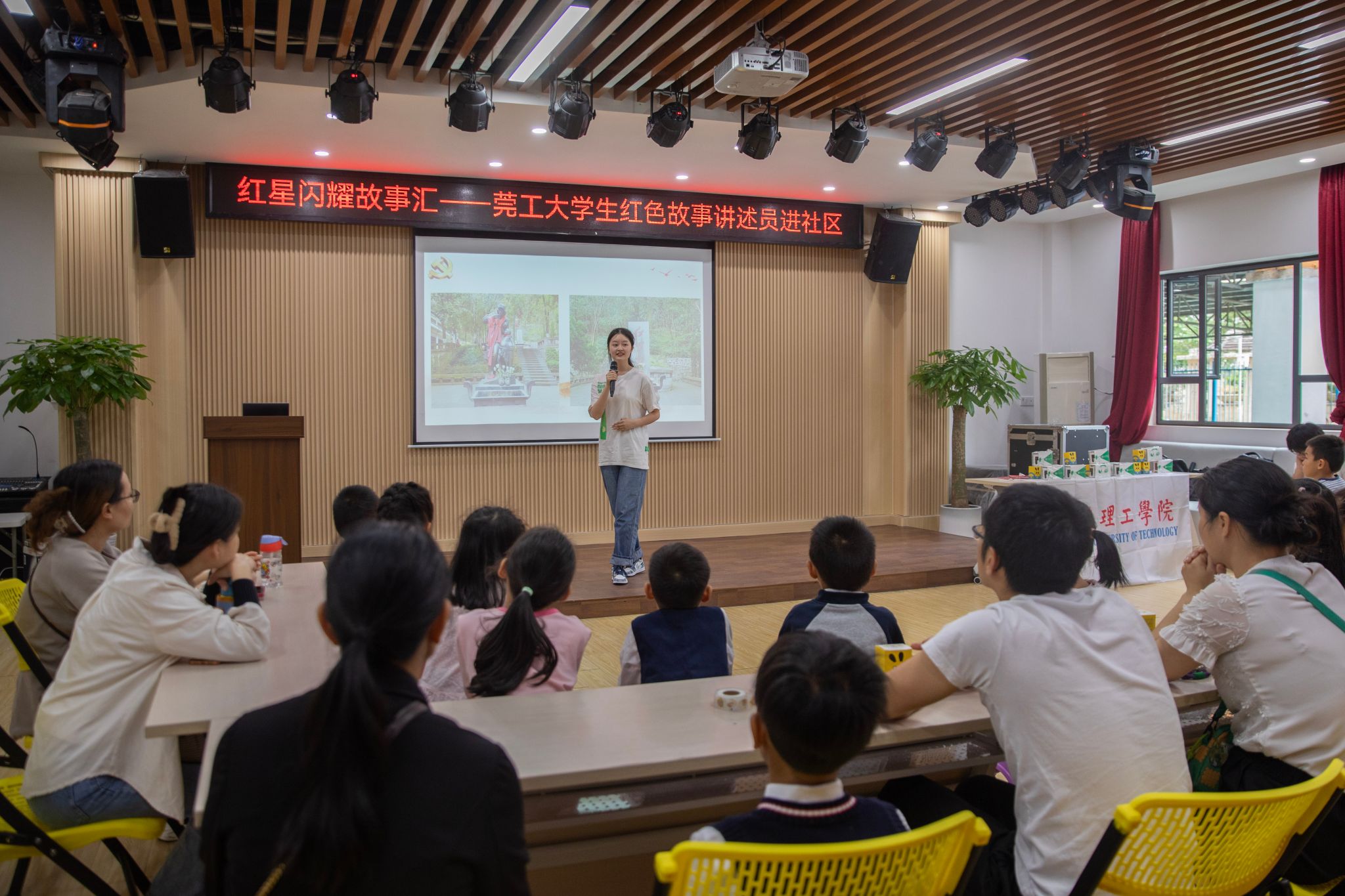 11月9日,“红星闪耀故事汇 ——莞工大学生红色经典故事讲述员进社区”活动在松山湖社区综合服务中心举行。此次活动面向周边社区的亲子家庭展开,旨在办好红色教育、讲好红色故事、传承红色基因,让红色文化不仅在校园中传播,也在社会上闪耀。来自莞工的两名优秀红色经典故事讲述员罗凯伦和杨碗义依次登台讲述革命先烈的英雄事迹,在孩子们心中播撒“红色种子”,为家长们树立红色模范。