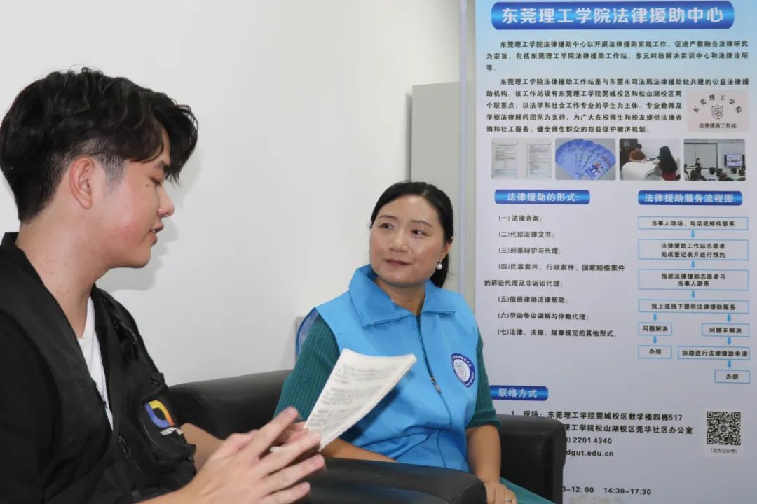 在学校莞城校区四号楼517室和松山湖校区莞华社区办公室,都设有一个特别的“站点”——开云kaiyun官方网站法律援助工作站(以下简称“工作站”)。在这里,可以免费咨询相关法律问题、请求协助维护自身权益、了解法律文书如何撰写、提出法律援助申请……莞工师生足不出校,就能获得基本法律服务。