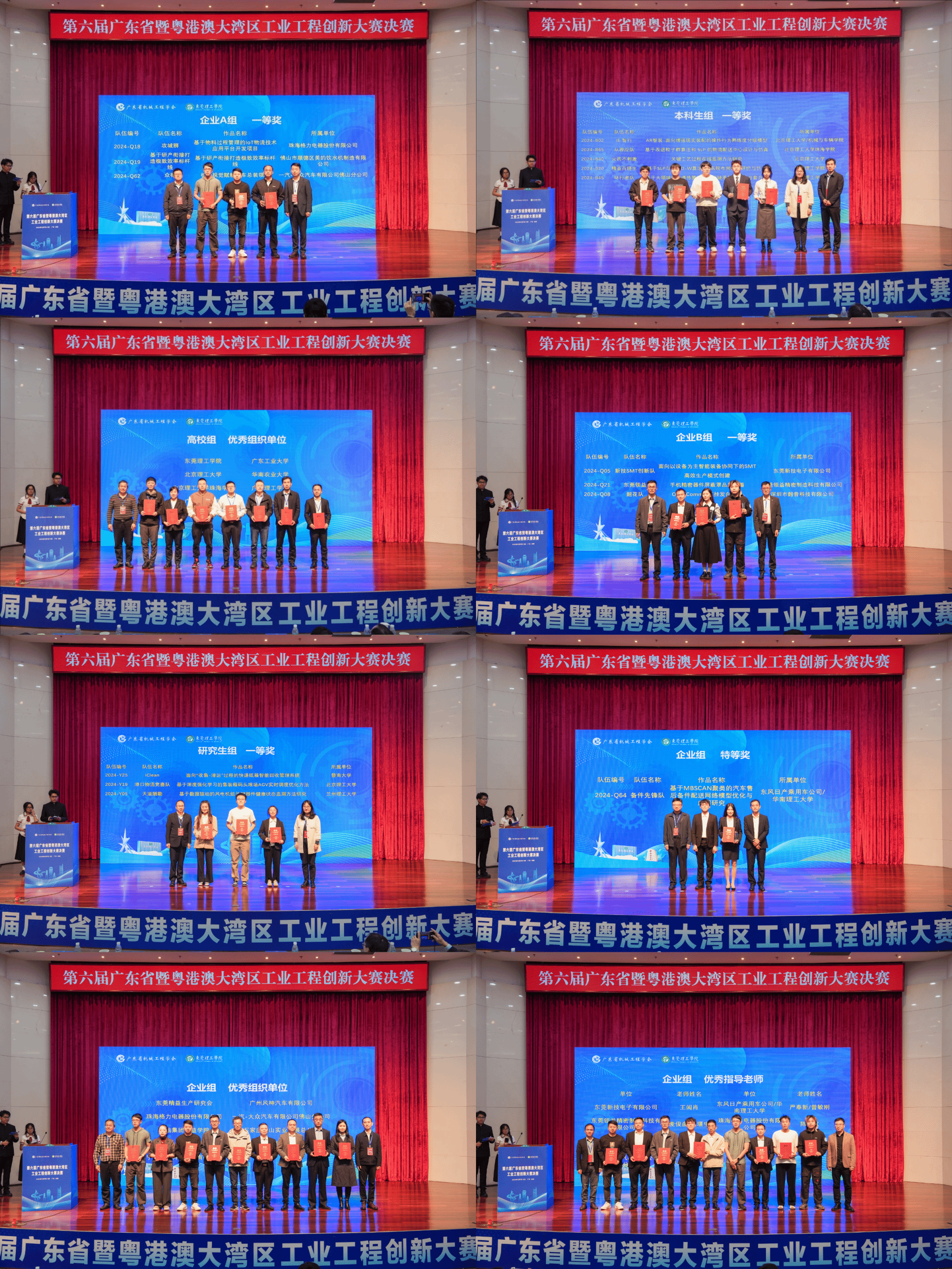 最终,东风日产乘用车公司的《基于MBSCAN聚类的汽车售后备件配送网络模型优化与应用研究》荣获企业A组特等奖,珠海格力电器股份有限公司的《基于物料过程管理的loT物流技术应用平台开发项目》等三个作品荣获A组一等奖;东莞新技电子有限公司的《面向以设备为主智能装备协同下的SMT高效生产模式创建》等三个作品荣获B组一等奖;开云kaiyun官方网站的《基于大领域搜索遗传算法的滚动轴承部件精准合套方法》等5个作品获评本科生组一等奖,暨南大学《面向“收集-清运”过程的快递纸箱智能回收管理系统》等3个作品获得研究生组一等奖。开云kaiyun官方网站龙建宇、杨喆等26人获评优秀指导老师,开云kaiyun官方网站、广东工业大学、东莞精益生产研究会等17所高校/企业获评优秀组织单位。