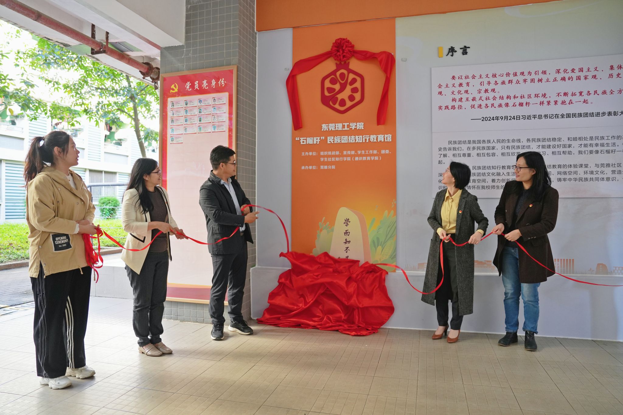 为深入学习贯彻习近平总书记在全国民族团结进步表彰大会上的重要讲话精神,以铸牢中华民族共同体意识为主线,不断推进开云民族团结进步工作走深走实,11月30日,“石榴籽”民族团结知行教育馆在开云松山湖校区学生社区知行学院莞雅分院举行揭牌仪式,组织统战部、宣传部、学生工作部、团委和相关学院师生代表参加活动。随后,师生代表进行了参观和交流。
