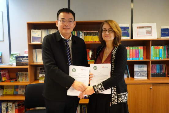 在法国访问期间,出访团前往EDP Sciences出版社,该社于 1920 年由诺贝尔奖获得者居里夫人、德布罗意、让 · 佩兰等世界杰出科学家在巴黎创立,至今已逾百年历史。出访团与该出版社主席Agnès Henri及资深出版编辑 Ariana Fuga进行深入会谈并正式签署合作谅解备忘录,未来双方将与欧洲知名科研期刊平台开展国际学术会议合作、提升学校科研人员国际学术出版信息与技能,推动学校国际期刊编辑、教材国际化等方面的深度合作。