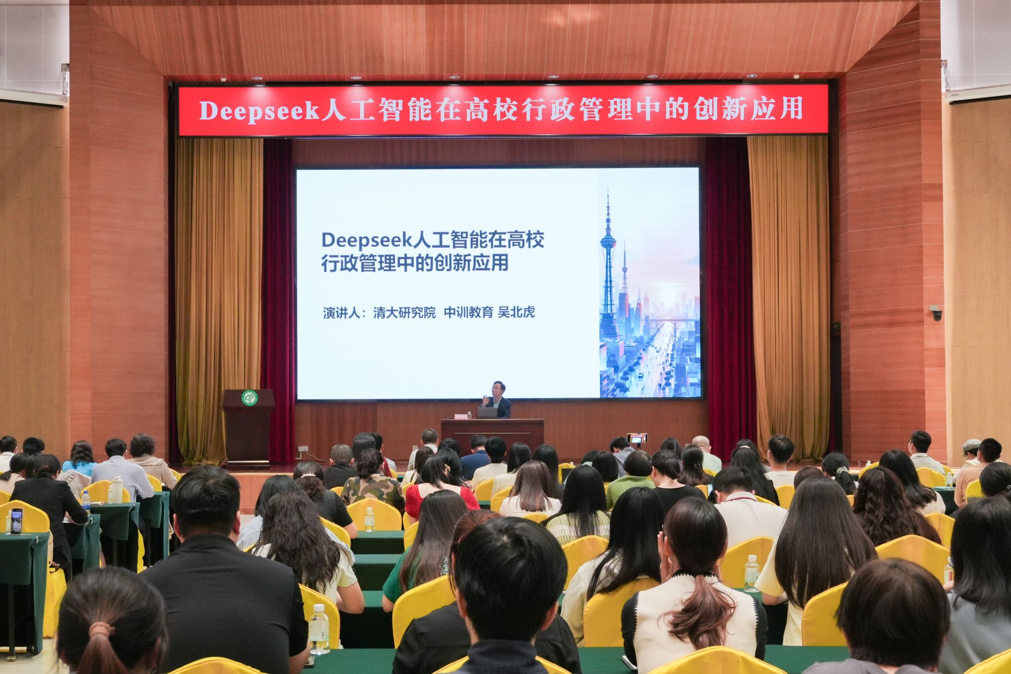3月25日,Deepseek人工智能在高校行政管理中的创新应用交流会在学术会议中心多功能厅举办,本次会议由学校人力资源部主办,有关二级组织机构负责人、工作人员200余人参加,共同学习探讨人工智能技术在高校行政领域的实践应用。
