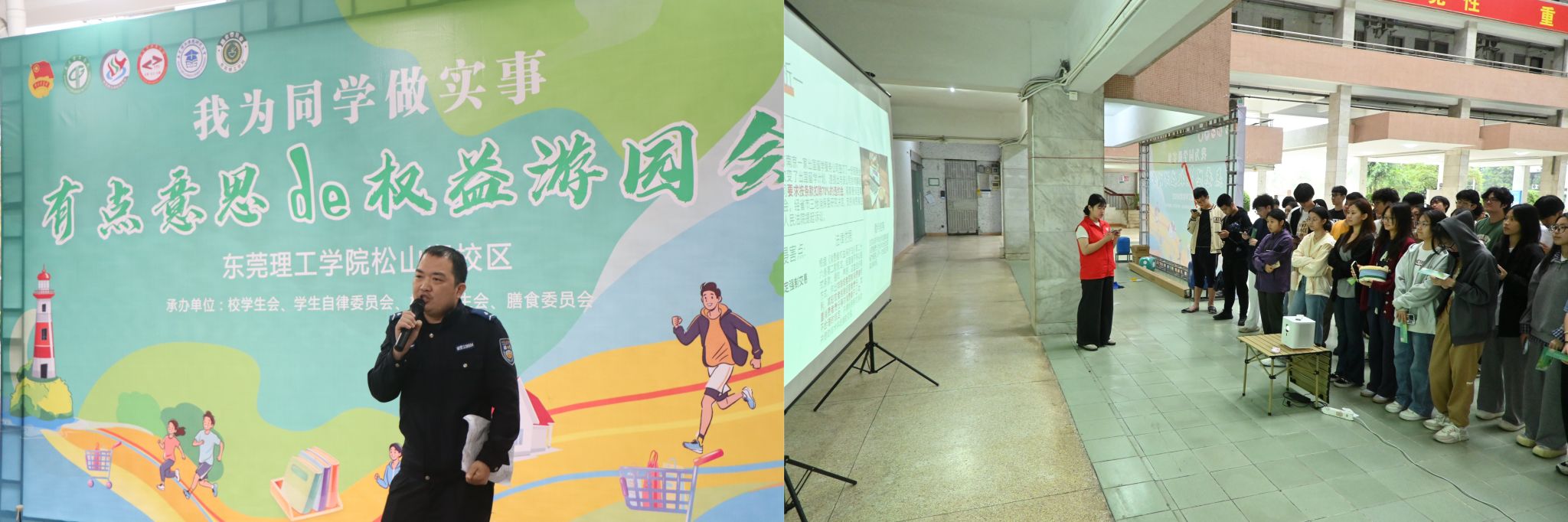 3月15日,校学生会“我为同学做实事——莞工权益周”平安校园建设系列活动在两校区火热开展。本次活动以“消费者权益”“防诈宣传”“食品安全”为核心议题,校学生会联合学生自律委员会、研究生会及膳食委员会等学生组织,通过开展线上知识问答、线下权益周游园会等活动普及强化日常校园消费安全意识,吸引近3000名学生参与。活动不仅深化了权益保护教育,更将平安校园理念融入校园治理体系,为构建“共建共治共享”的和谐校园注入青春动能。