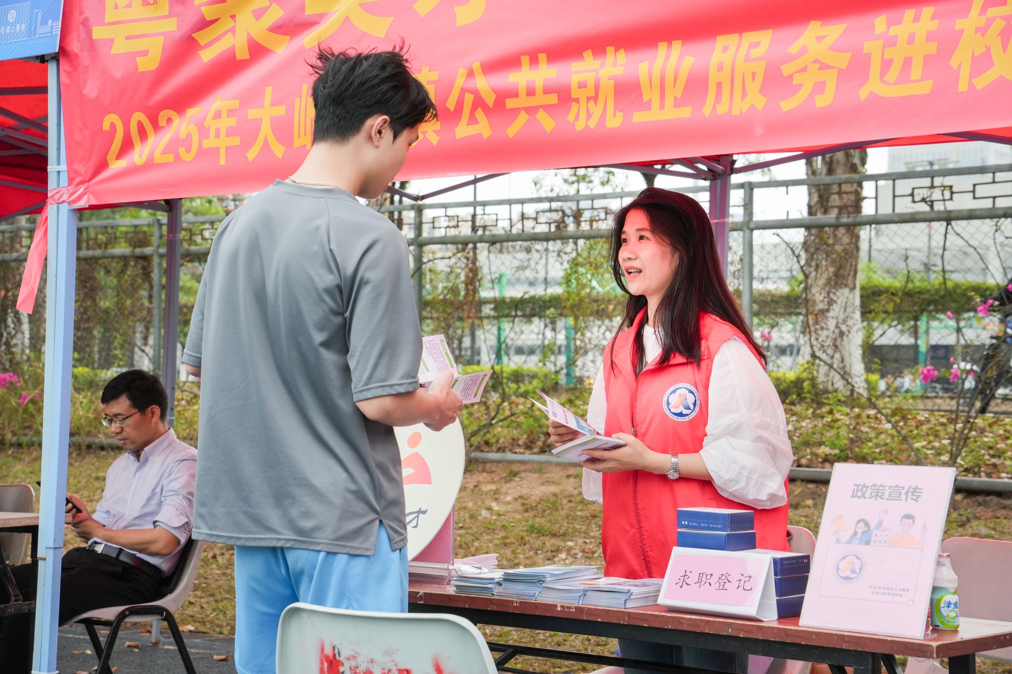 政策咨询展位特邀东莞市南城街道、东莞市石龙镇、东莞市大岭山镇、广州市南沙区、深圳市光明区等地人社局现场宣讲就业创业相关政策,为学生解读行业动态与扶持措施,切实提升求职竞争力。