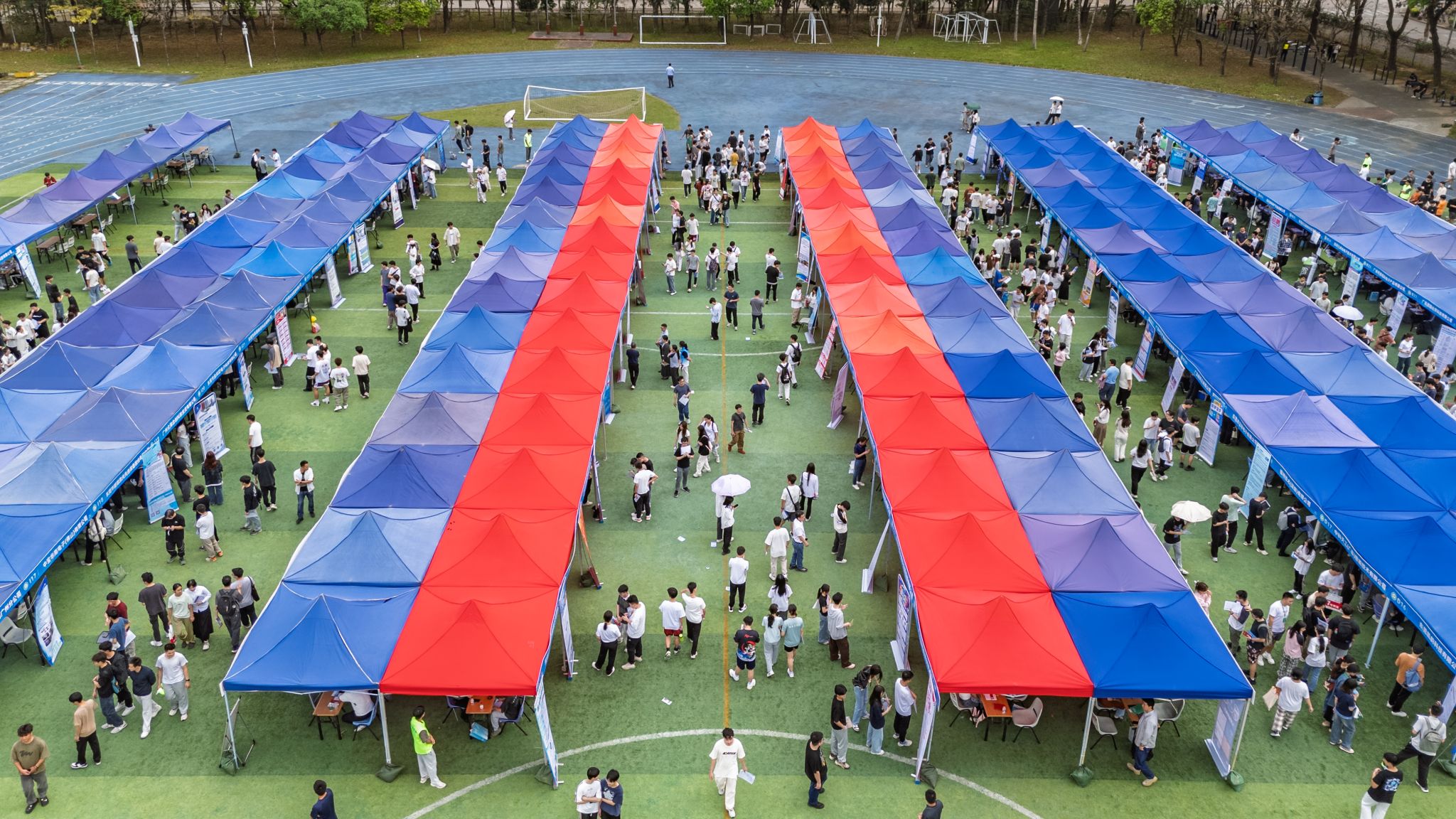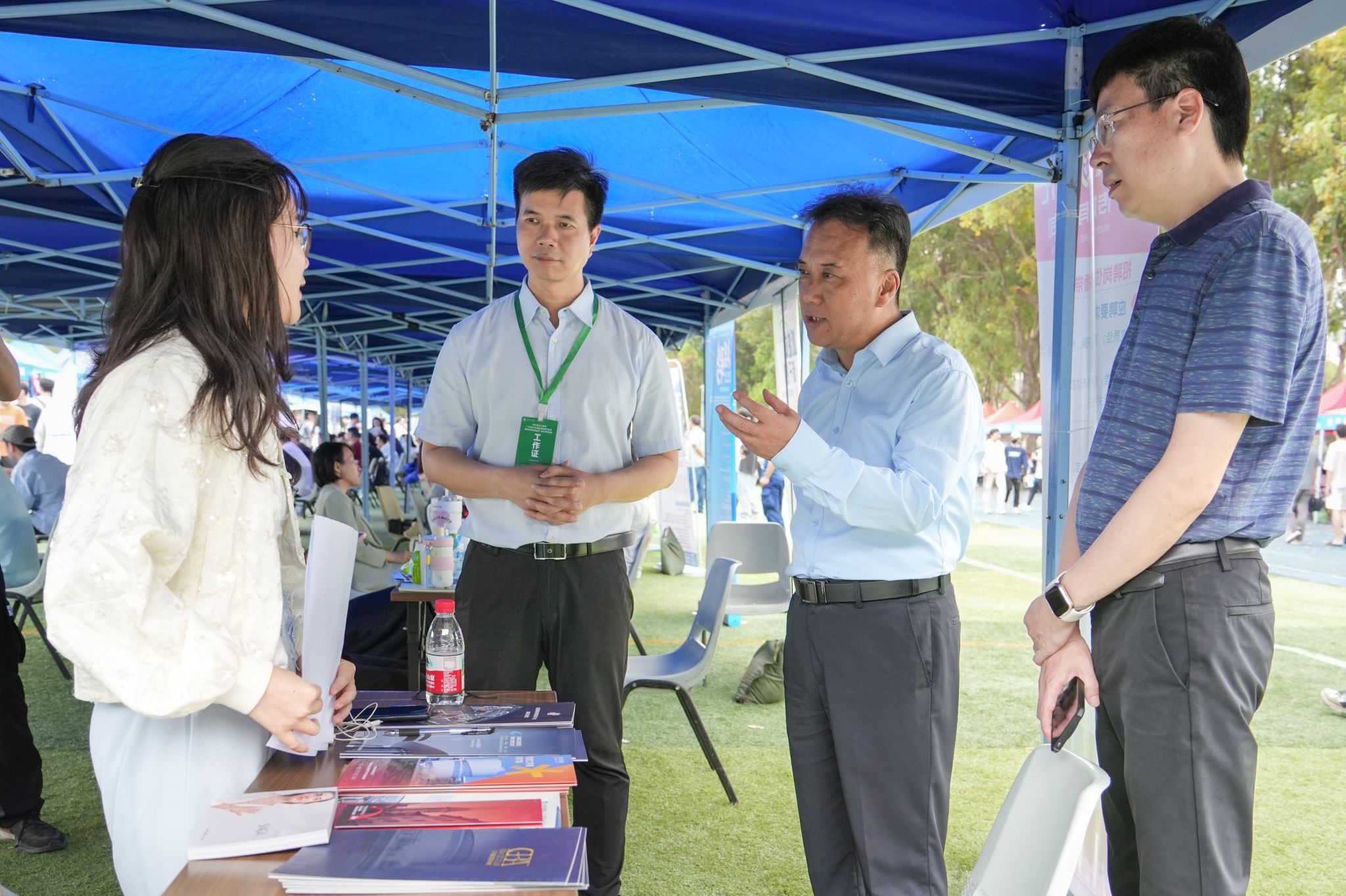 下午2:00,活动现场早已人头攒动,企业展位排列有序。毕业生们手持简历穿梭于各展区间,与企业招聘者深入交流。