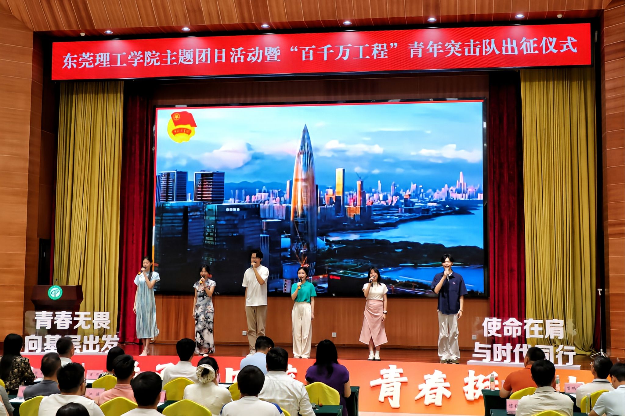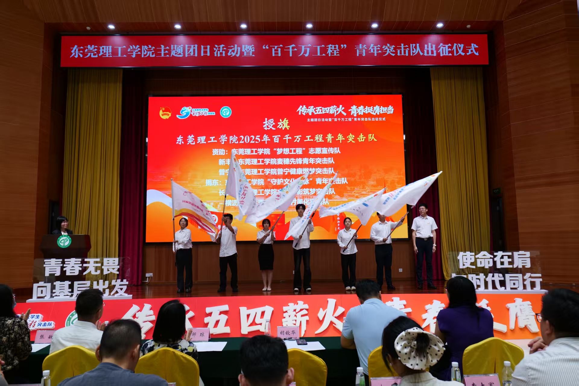 为深入学习贯彻党的二十大精神,弘扬五四精神,激励广大团员青年在新时代新征程中勇担使命、奋发有为,5月29日晚,学校在松山湖校区学术会议中心多功能厅举行“传承五四薪火·青春挺膺担当”主题团日活动暨“百千万工程”青年突击队出征仪式。校党委委员、副校长胡钦华出席活动并讲话。组织统战部、宣传部、学生工作部、校工会、研究生院、校团委等部门负责人,各学院学生工作负责人、基层团组织负责人及团员青年代表共同见证这一庄严时刻。