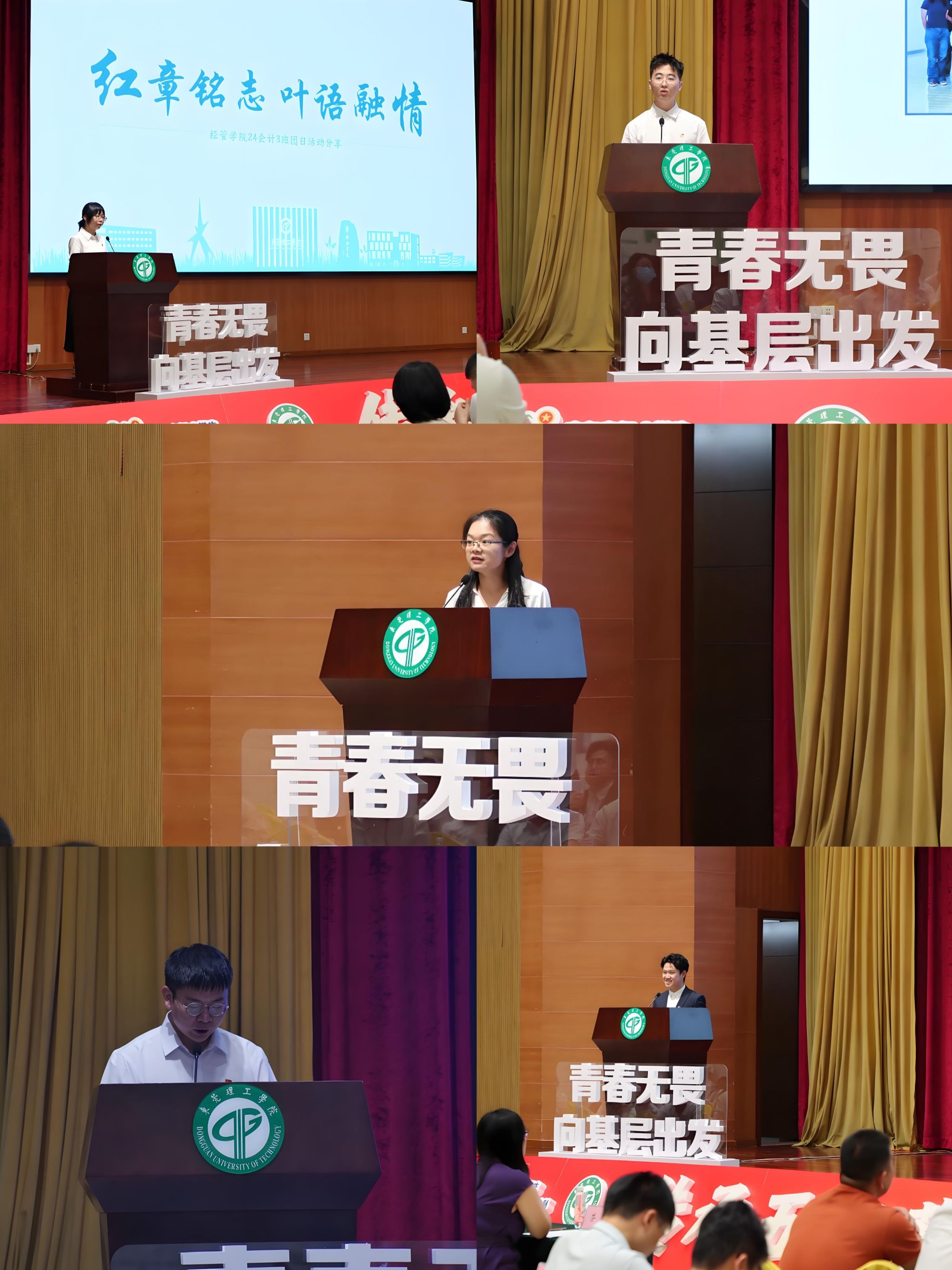 在“莞工青年说”环节,五位优秀青年代表依次登台,分享成长经历与奋斗故事。经济与管理学院2024级会计学3班团支书蔡诗茵围绕“红章铭志、叶语融情”主题团日活动开展情况,讲述了基层团组织如何通过红色教育和实践育人,激发青年团员的使命感和责任感。国际微电子学院2023级电子信息专业研究生范鹤潇作为国家奖学金获得者,分享了自己在科研道路上不断突破、追求卓越的成长历程,鼓励同学们以科研报国为己任,将个人理想融入国家发展大局。第十八届“挑战杯”广东大学生课外学术科技作品竞赛特等奖项目负责人周天赐介绍了团队研发的“AI宝护——胎儿生长受限早期智能预警云平台”,展示了莞工学子在科技创新领域的突出成果。全国“三下乡”社会实践优秀团队负责人张和玮则以“绿色哨兵——以人工智能装备助力农业现代化”为主题,讲述了团队在乡村振兴一线挥洒青春汗水、贡献智慧力量的感人故事。生态环境与建筑工程学院团委书记张媚围绕“知行合一——绿色低碳实践育人体系构建”主题,系统阐述了学院在生态文明教育、绿色志愿服务等方面的探索与成效。