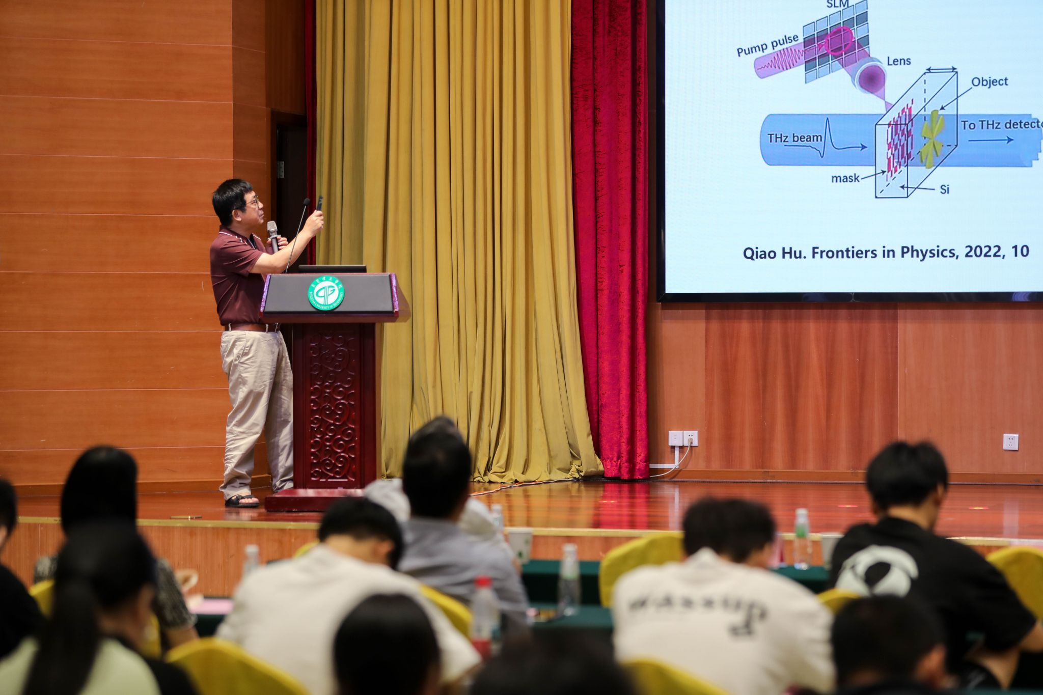 开幕式后,黄新飞教授带来《制度型开放与粤港澳大湾区融合发展》主题报告。宫玉彬教授则聚焦太赫兹技术领域,带来《太赫兹大功率源注波互作用结构的研究》报告。