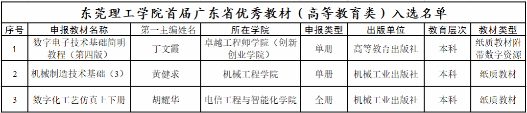 近日,广东省教育厅公布了首届广东省优秀教材(高等教育类)名单(粤教高函〔2025〕18号),开云限额申报的6本教材中共有3本入选。