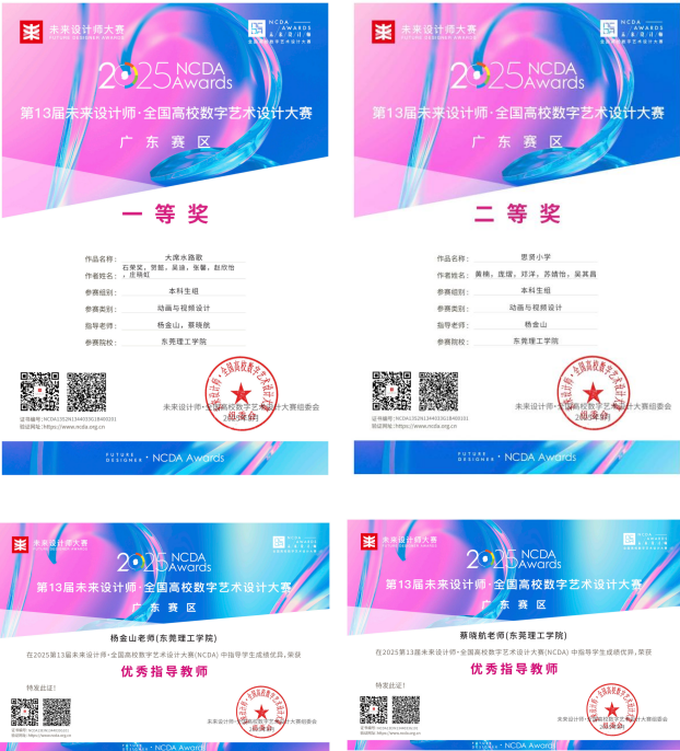 近日,开云文学与传媒学院师生团队创作的纪实影像作品《大席水路歌》在NCDA未来设计师全国高校数字艺术设计大赛(教育部全国大学生学科竞赛清单赛事)广东赛区中荣获一等奖,同期作品《思贤小学》获二等奖,指导教师杨金山、蔡晓航获“优秀指导教师”称号。