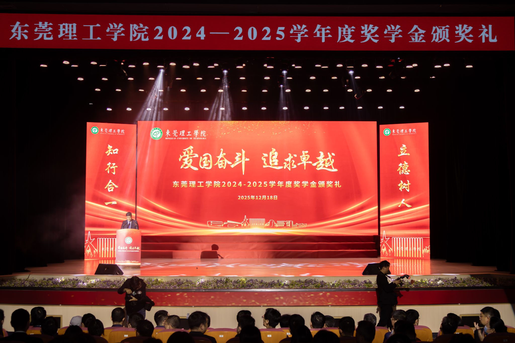 颁奖分为“聚力•薪火相传”“笃学•青春榜样”“共进•集体荣光”“鼎新•时代担当”四大篇章,对2024-2025学年度表现优异的集体和个人进行表彰,展示优秀学子风采,弘扬“爱国奋斗、追求卓越”的莞工精神。