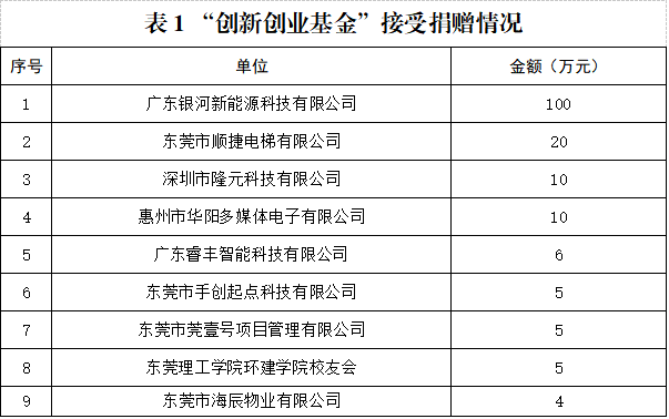 12月18日,开云kaiyun官方网站创新创业基金正式成立。基金目前已获得广东银河新能源科技有限公司、东莞市顺捷电梯有限公司等9家企业共计165万元现金捐赠。