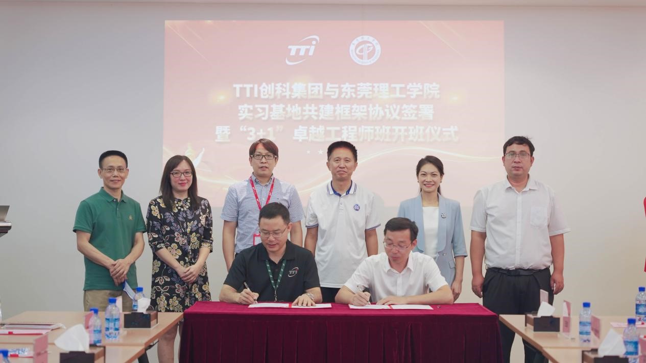 在签约仪式上,校镇企三方对教学实习基地建设和TTI卓越工程师班开班分别致辞;校企双方在厚街镇政府代表和学生见证下,完成了“开云kaiyun官方网站-TTI创科集团共建教学实习基地框架协议”签订和实习基地揭牌仪式。