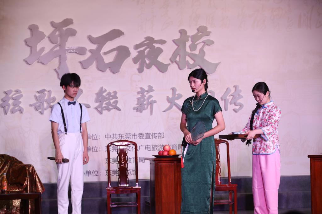 6月18日晚,由中共东莞市委宣传部指导,东莞市文广旅体局、东莞市教育局主办,东莞展览馆承办,东莞图书馆、东莞玉兰大剧院管委会协办的东莞展览馆“坪石夜校”主题晚会演出活动顺利举行。本次晚会,经济与管理学院学子积极参与活动各个环节,再现烽火岁月中的坪石校园生活。