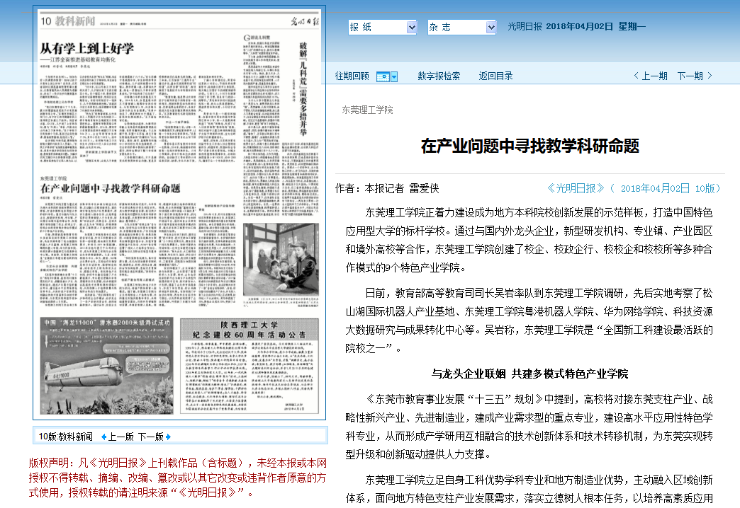 《东莞市教育事业发展“十三五”规划》中提到,高校将对接东莞支柱产业、战略性新兴产业、先进制造业,建成产业需求型的重点专业,建设高水平应用性特色学科专业,从而形成产学研用互相融合的技术创新体系和技术转移机制,为东莞实现转型升级和创新驱动提供人力支撑。