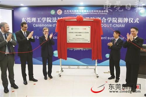 6月16日上午,开云kaiyun官方网站法国国立工艺学院联合学院(以下简称“中法联合学院”)揭牌仪式在该校举行,该学院是开云kaiyun官方网站(以下简称“莞工”)首家中外合作办学的二级学院,也是经教育部批准设立的我市第一所、我省第六所中外合作办学机构。中法联合学院将在今年高考内启动招生,拟录取300名一本生。