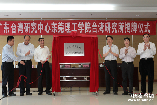 广东省市两级台办领导和校领导为研究所揭幕。(中国台湾网发)