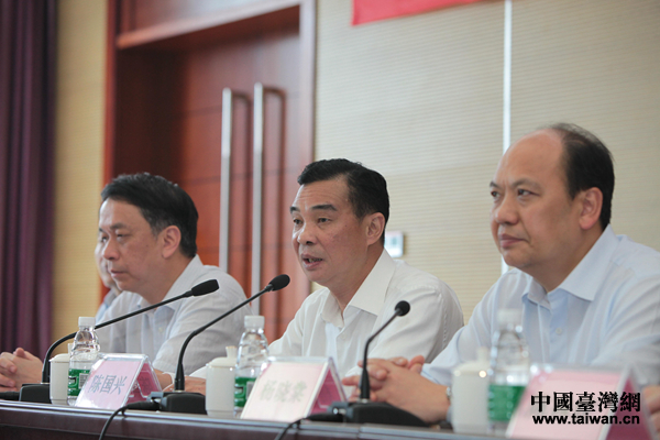 广东省人民政府台湾事务办公室主任陈国兴在成立仪式上致辞。(中国台湾网发)