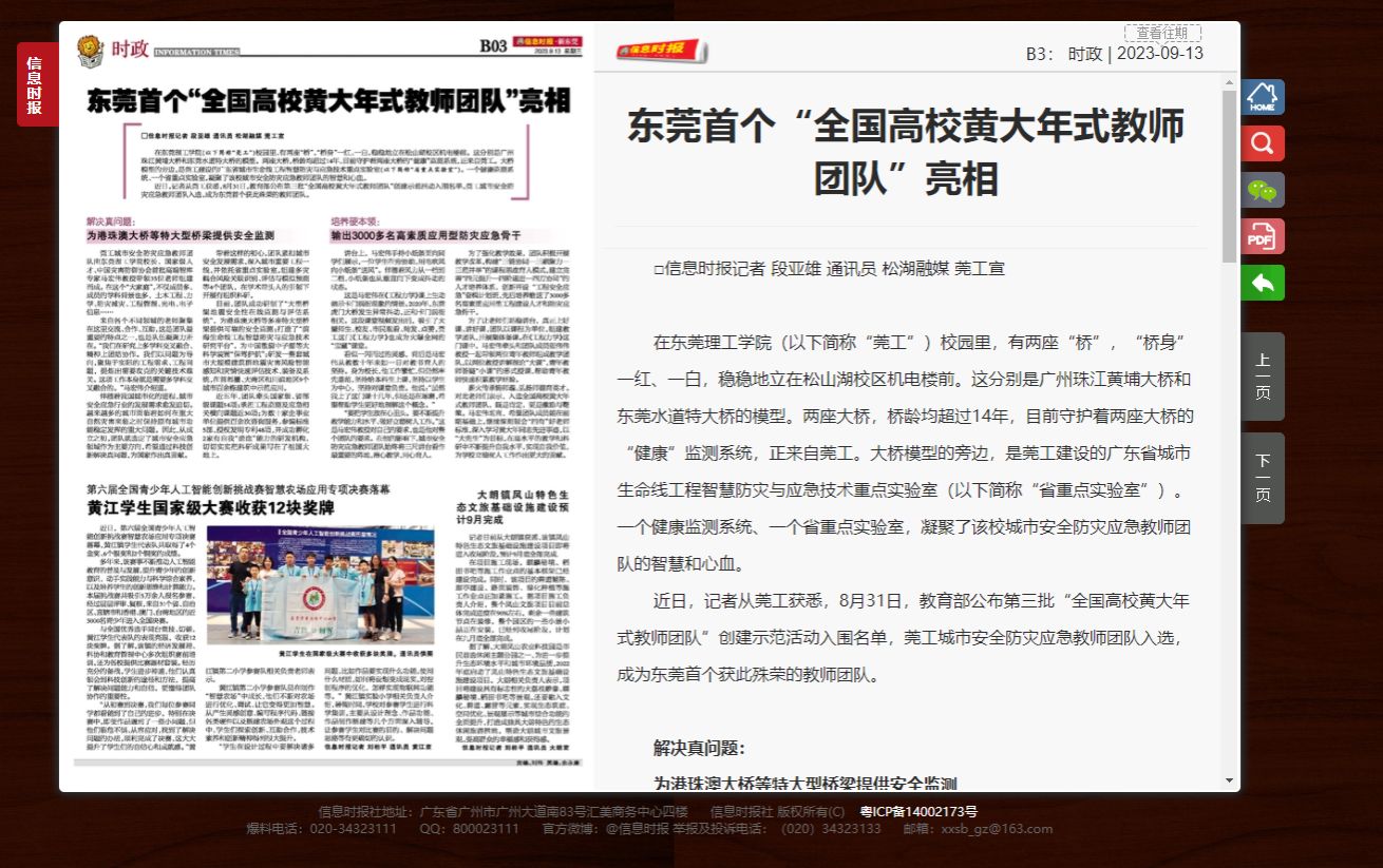 近日,记者从莞工获悉,8月31日,教育部公布第三批“全国高校黄大年式教师团队”创建示范活动入围名单,莞工城市安全防灾应急教师团队入选,成为东莞首个获此殊荣的教师团队。