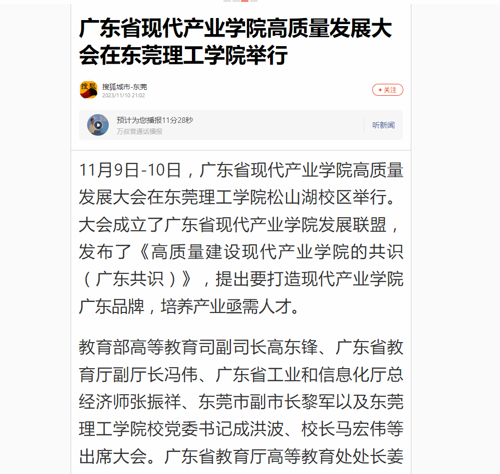 11月9日-10日,广东省现代产业学院高质量发展大会在开云kaiyun官方网站松山湖校区举行。大会成立了广东省现代产业学院发展联盟,发布了《高质量建设现代产业学院的共识(广东共识)》,提出要打造现代产业学院广东品牌,培养产业亟需人才。
