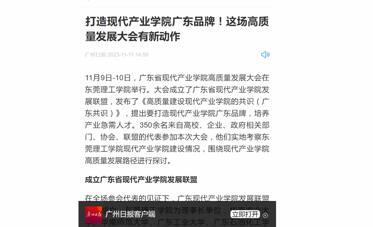 成立广东省现代产业学院发展联盟