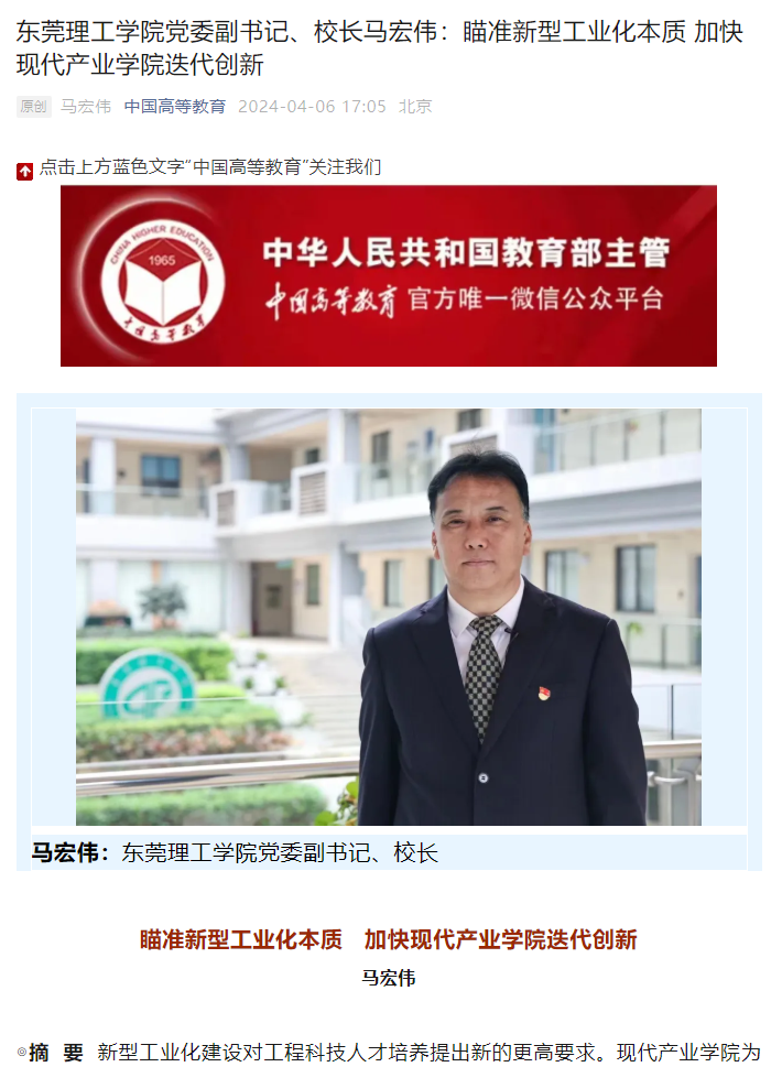 2023年,习近平总书记就推进新型工业化作出重要指示指出:“新时代新征程,以中国式现代化全面推进强国建设、民族复兴伟业,实现新型工业化是关键任务。”新型工业化建设对工程科技人才培养提出新的更高要求。现代产业学院建设是深入推进新工科建设、深化产教融合的重要举措。作为校、企、政、行、协等多主体共建共管共享的新型办学组织,现代产业学院通过在人才协同培养、技术联合开发和共建共治共创、持续迭代发展等方面的体制机制创新,为高校改革发展塑造了新优势、汇聚了新动能,为推进新型工业化建设和发展新质生产力提供了有力的人才支撑。