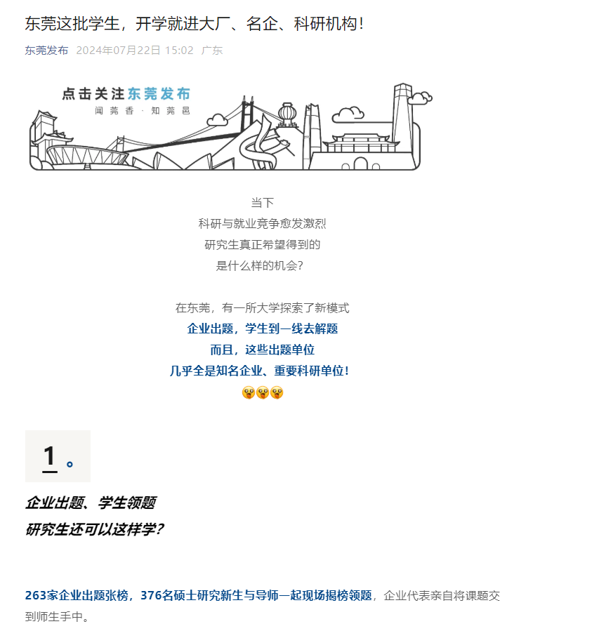 作为一座以制造业立市的城市,东莞拥有优良的产业环境和丰富的科技创新资源,越来越多的学生期望学有所成后,在这座城市开拓自己的未来。