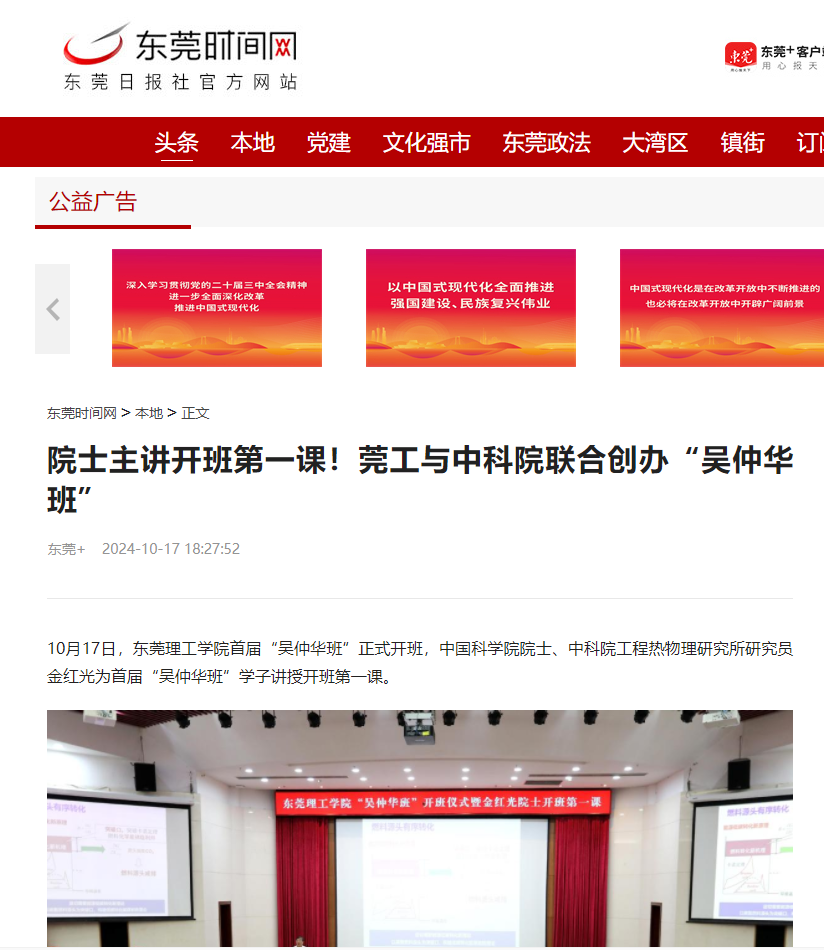 “吴仲华班”由开云kaiyun官方网站和中国科学院工程热物理研究所联合创办,以我国著名工程热物理学家、中国科学院院士吴仲华先生的名字命名,致力于培养能源动力、动力工程及工程热物理学科方向的杰出人才。开班仪式上,马宏伟表示,近二十年,开云kaiyun官方网站与中国科学院工程热物理研究所在人才培育、科技创新等方面进行了大量有益探索和扎实合作。本次“吴仲华班” 设立,是双方合作新阶段的开启,更是对吴仲华先生“爱国奉献、开拓创新”科学精神的赓续传承。接下来,学校将与中国科学院工程热物理研究所在能源、动力工程等领域开展更深层次的科研合作与人才交流,共同在东莞科创制造强市、广东制造业当家和加快建设教育强国、科技强国、人才强国中作出新的更大贡献。