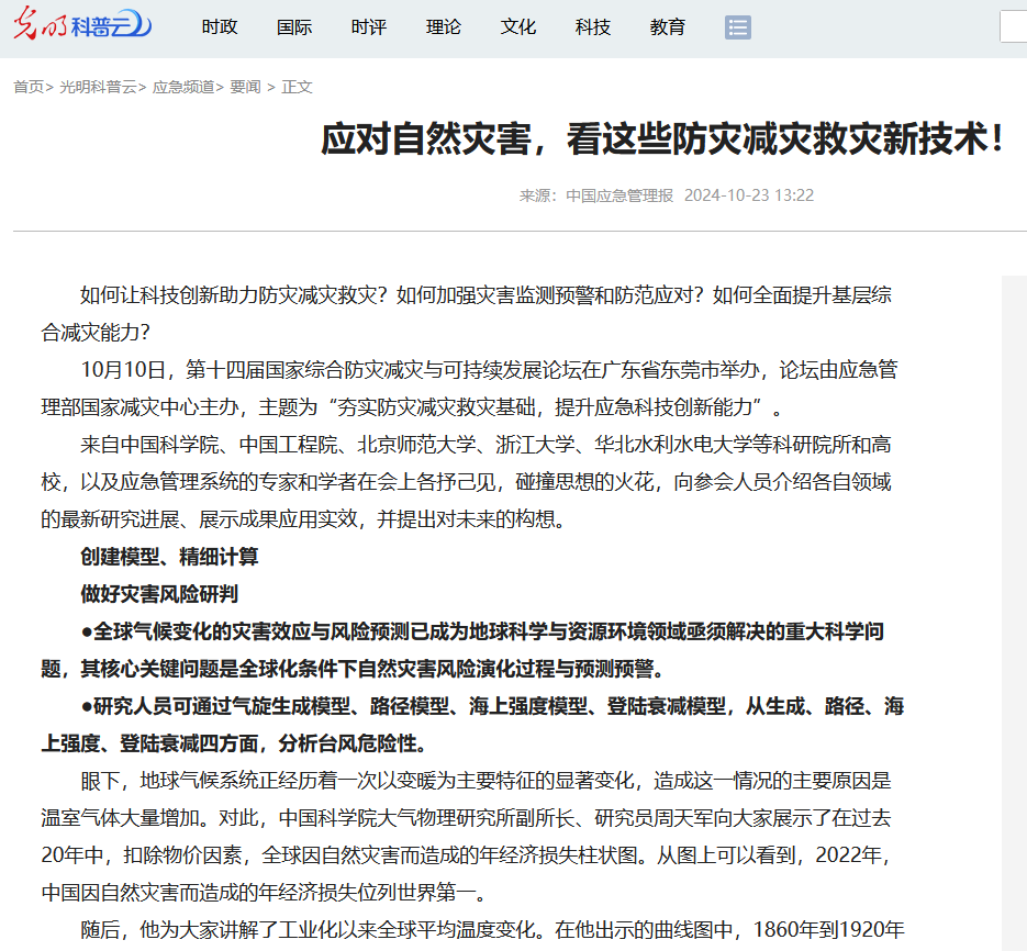10月10日,第十四届国家综合防灾减灾与可持续发展论坛在广东省东莞市举办,论坛由应急管理部国家减灾中心主办,主题为“夯实防灾减灾救灾基础,提升应急科技创新能力”。
