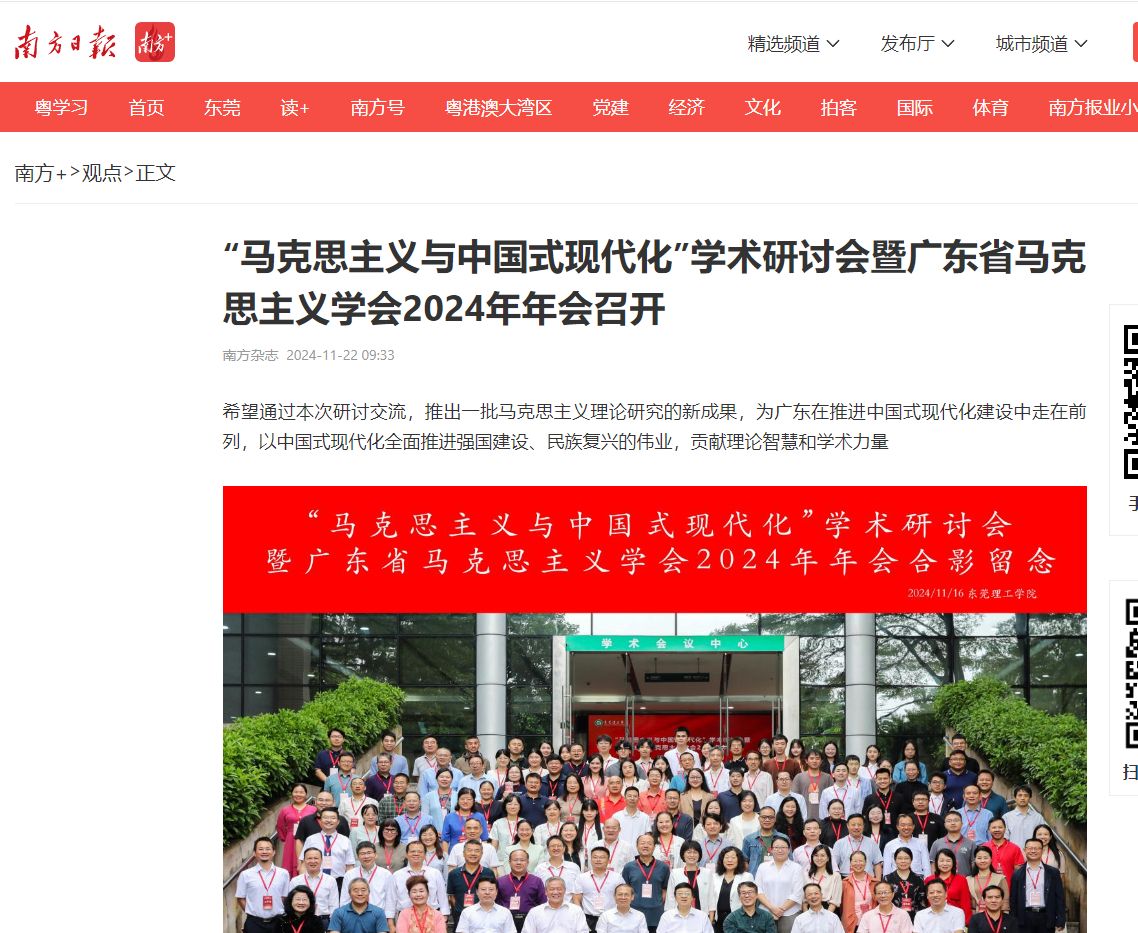 李忠红副书记致欢迎辞并指出,中国式现代化理论是马克思主义中国化时代化的重要创新。党的十八大以来,习近平总书记围绕中国式现代化发表了一系列重要论述,提出系列新概念、新范畴、新表述,为构建中国式现代化学科体系、学术体系、话语体系指明了前进的方向,提供了根本遵循。党的二十届三中全会对进一步全面深化改革、推进中国式现代化作出了战略部署。广东是改革开放的排头兵、先行地、实验区,在中国式现代化建设的大局中具有重要的地位,作用突出。本次研讨会对于进一步总结党团结和带领人民走上中国式现代化道路,创造人类文明新形态,推进马克思主义中国化时代化的光辉历程,更好地把握以中国式现代化全面推进中华民族伟大复兴的历史逻辑、理论逻辑与实践逻辑,具有非常重要的意义。希望通过本次研讨交流,共同推动中国式现代化的理论与实践研究,不断开辟21世纪马克思主义研究的新境界。