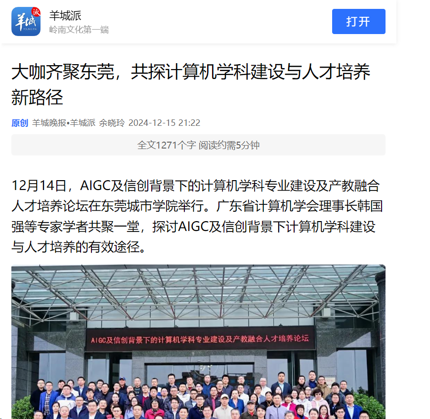 12月14日,AIGC及信创背景下的计算机学科专业建设及产教融合人才培养论坛在东莞城市学院举行。广东省计算机学会理事长韩国强等专家学者共聚一堂,探讨AIGC及信创背景下计算机学科建设与人才培养的有效途径。