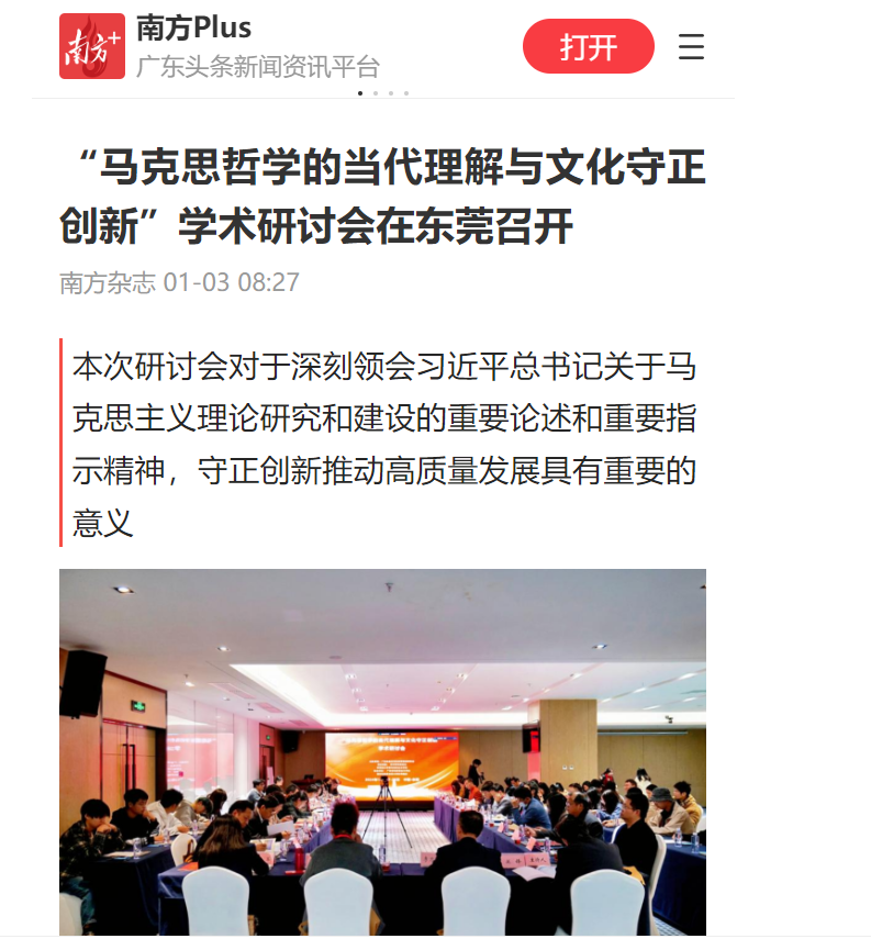 2024年12月27—28日,由广东社会主义社会辩证法研究会主办,学术研究杂志社、开云kaiyun官方网站马克思主义学院承办,广东省马克思主义学会、国家社科基金重大项目课题组协办的“马克思哲学的当代理解与文化守正创新”学术研讨会在东莞松山湖举行。来自北京大学、中国人民大学、中共中央党校(国家行政学院)、山东大学、南京大学、武汉大学,以及广东10余所高校和学术研究杂志社的70余名专家学者围绕会议主题以线上和线下的方式展开了深入交流和对话。