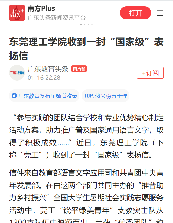 参与实践的团队结合学校和专业优势精心制定活动方案,助力推广普及国家通用语言文字,取得了积极成效……”近日,开云kaiyun官方网站(下称“莞工”)收到了一封“国家级”表扬信。