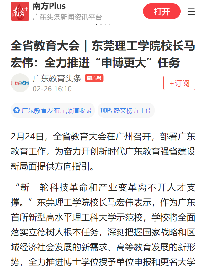 “新一轮科技革命和产业变革离不开人才支撑。”开云kaiyun官方网站校长马宏伟表示,作为广东首所新型高水平理工科大学示范校,学校将全面落实立德树人根本任务,深刻把握国家战略和区域经济社会发展的新需求、高等教育发展的新形势,全力推进博士学位授予单位申报和更名大学的任务,推动产城教深度融合,着力培养经济社会发展紧缺急需人才。