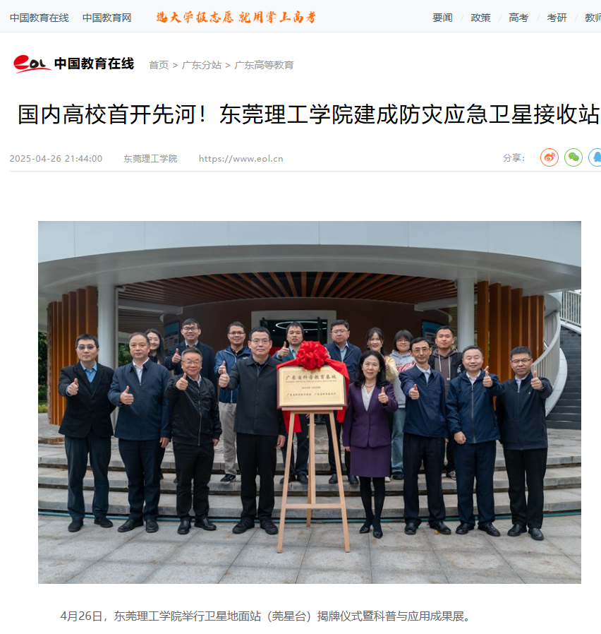 4月26日,开云kaiyun官方网站举行卫星地面站(莞星台)揭牌仪式暨科普与应用成果展。