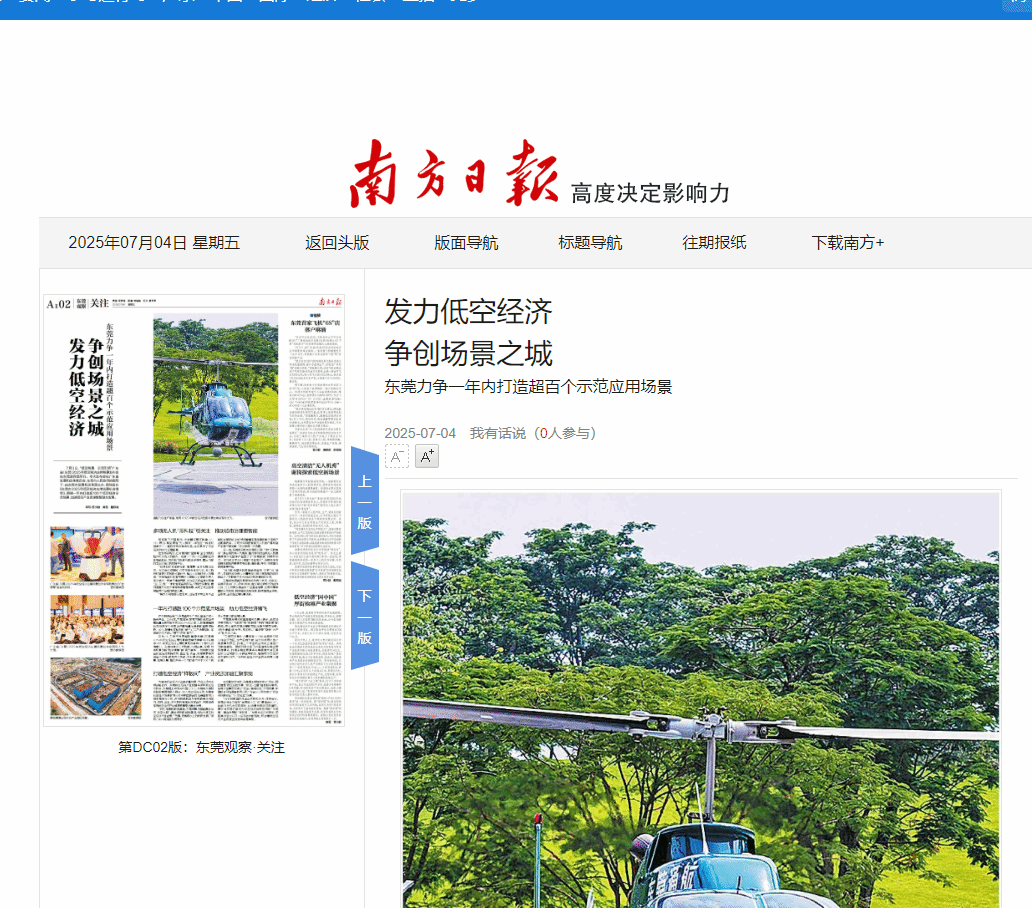 作为制造业强市,东莞正积极布局低空经济这一新兴产业。2024年,东莞印发《东莞市推动低空经济高质量发展实施方案(2024—2026年)》,明确提出将低空经济作为未来经济高质量发展新的重要增长极。如今,随着越来越多的“低空+”应用场景落地,东莞低空经济正从“起飞”迈向“腾飞”。