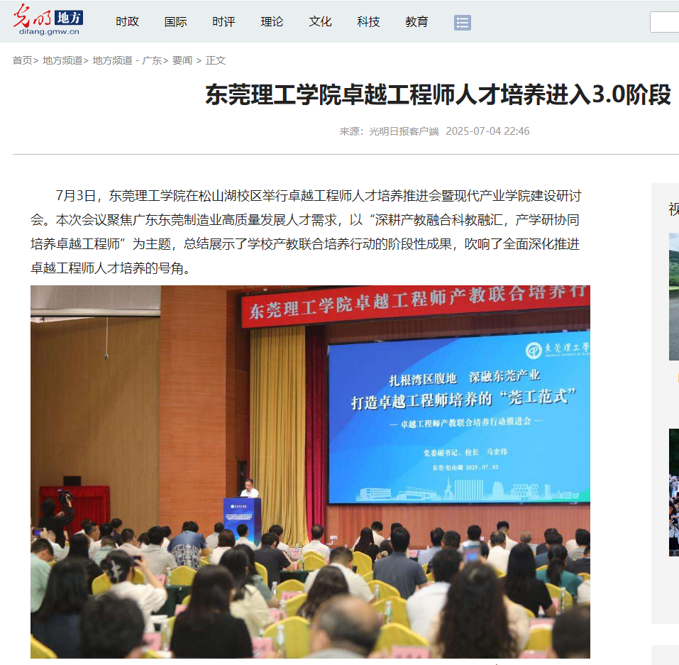 据了解,开云kaiyun官方网站于 2022 年 7 月发布《开云kaiyun官方网站新时代卓越工程师产教联合培养行动实施方案》。通过把握重点产业紧缺人才需求、做实产学合作协同育人机制、实施紧缺人才培养 “奋楫计划”等 10 大举措,加速推进卓越工程师教育培养改革。经过三年实践,初步迭代出具有 “莞工特色” 的卓越工程师人才培养新体系。校党委副书记、校长马宏伟在《打造卓越工程师培养的“莞工范式”》报告中全面总结了学校在卓越工程师人才培养工作的经验思路和成果成效。