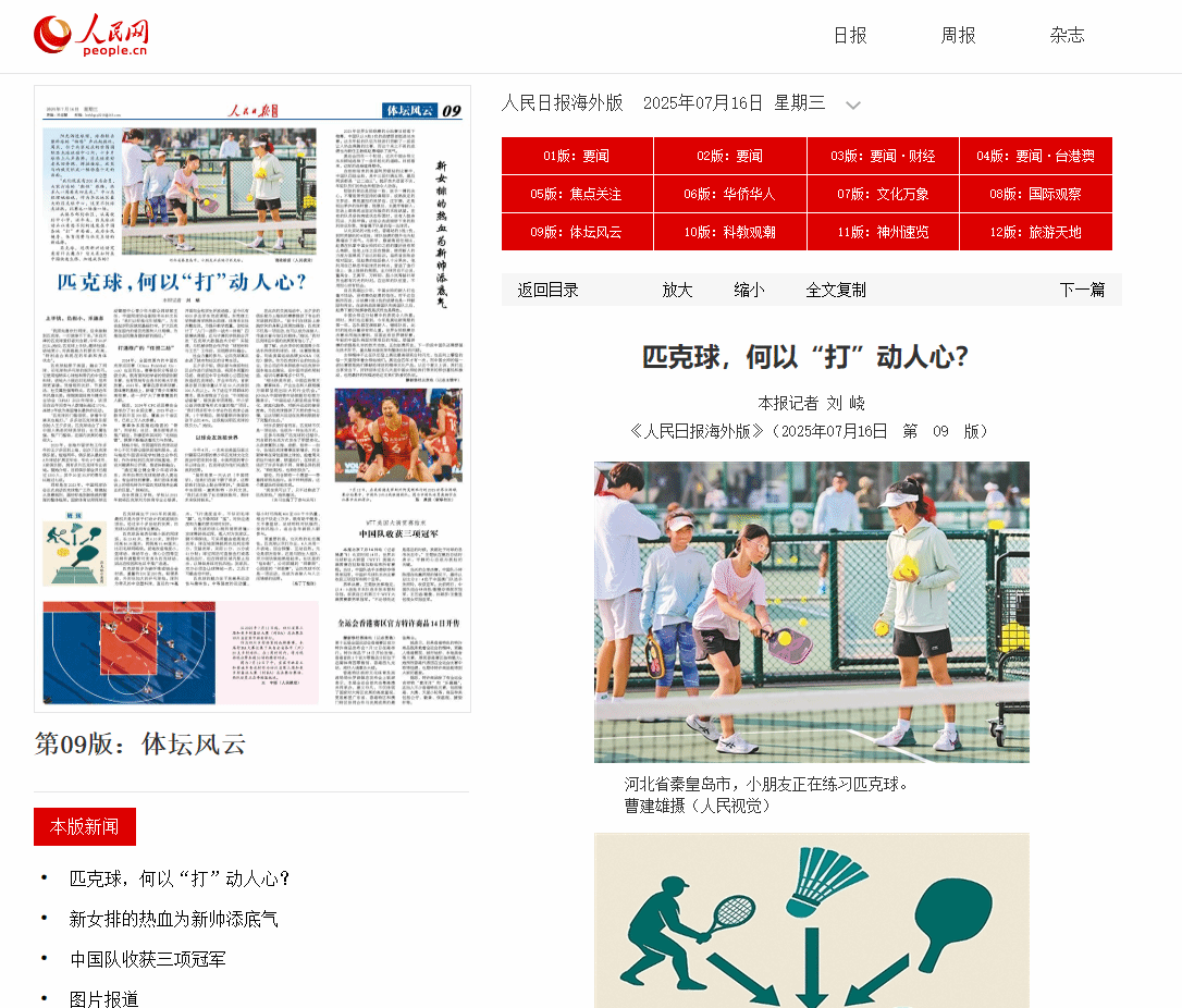 从俱乐部到社区,从高校到中小学,近年来,匹克球运动正以意想不到的速度在中国各地“打”开局面,成为全民健身、体育消费与社交互动的新选择。