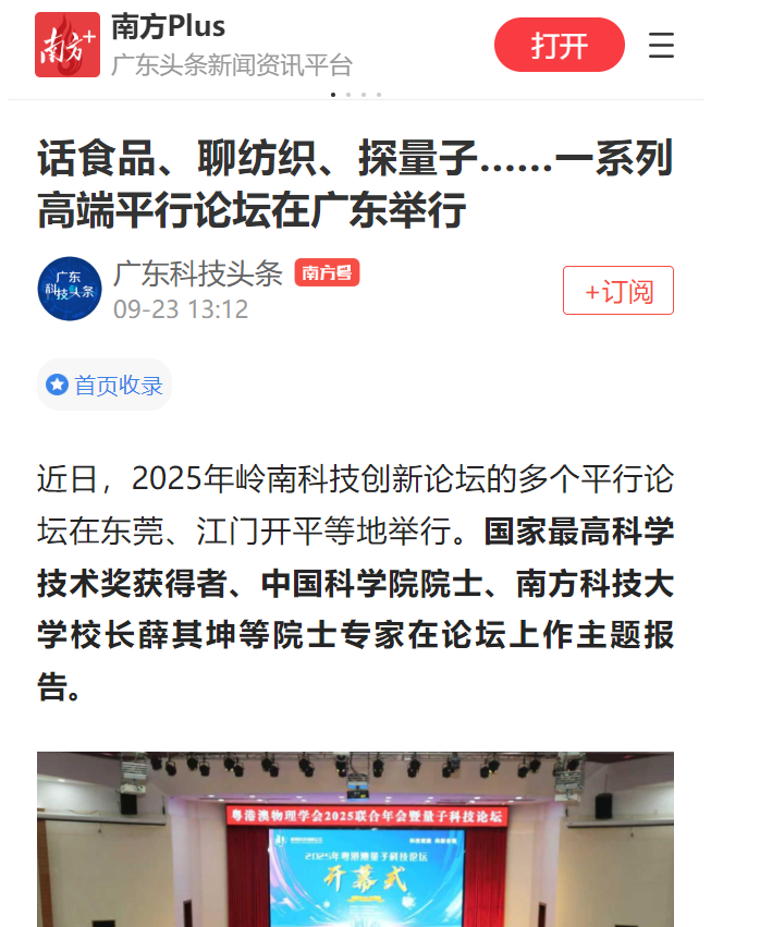 近日,2025年岭南科技创新论坛的多个平行论坛在东莞、江门开平等地举行。国家最高科学技术奖获得者、中国科学院院士、南方科技大学校长薛其坤等院士专家在论坛上作主题报告。
