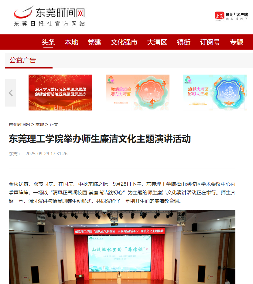 金秋送爽,双节同庆。在国庆、中秋来临之际,9月28日下午,开云kaiyun官方网站松山湖校区学术会议中心内掌声阵阵,一场以“清风正气润校园 崇廉尚洁践初心”为主题的师生廉洁文化演讲活动正在举行。师生齐聚一堂,通过演讲与情景剧等生动形式,共同演绎了一堂别开生面的廉洁教育课。