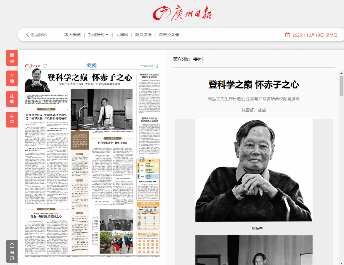 诺贝尔物理学奖得主、中国科学院院士、著名物理学家杨振宁于10月18日在北京逝世,享年103岁。