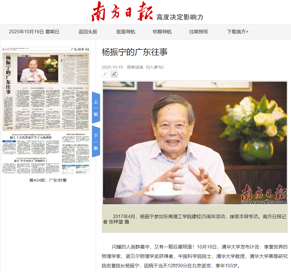 科学大家杨振宁因病逝世,中国乃至全球科学界为之扼腕。而看到清华大学讣告的那一刻,两次采访杨振宁的往事,突然在脑海里清晰起来了。